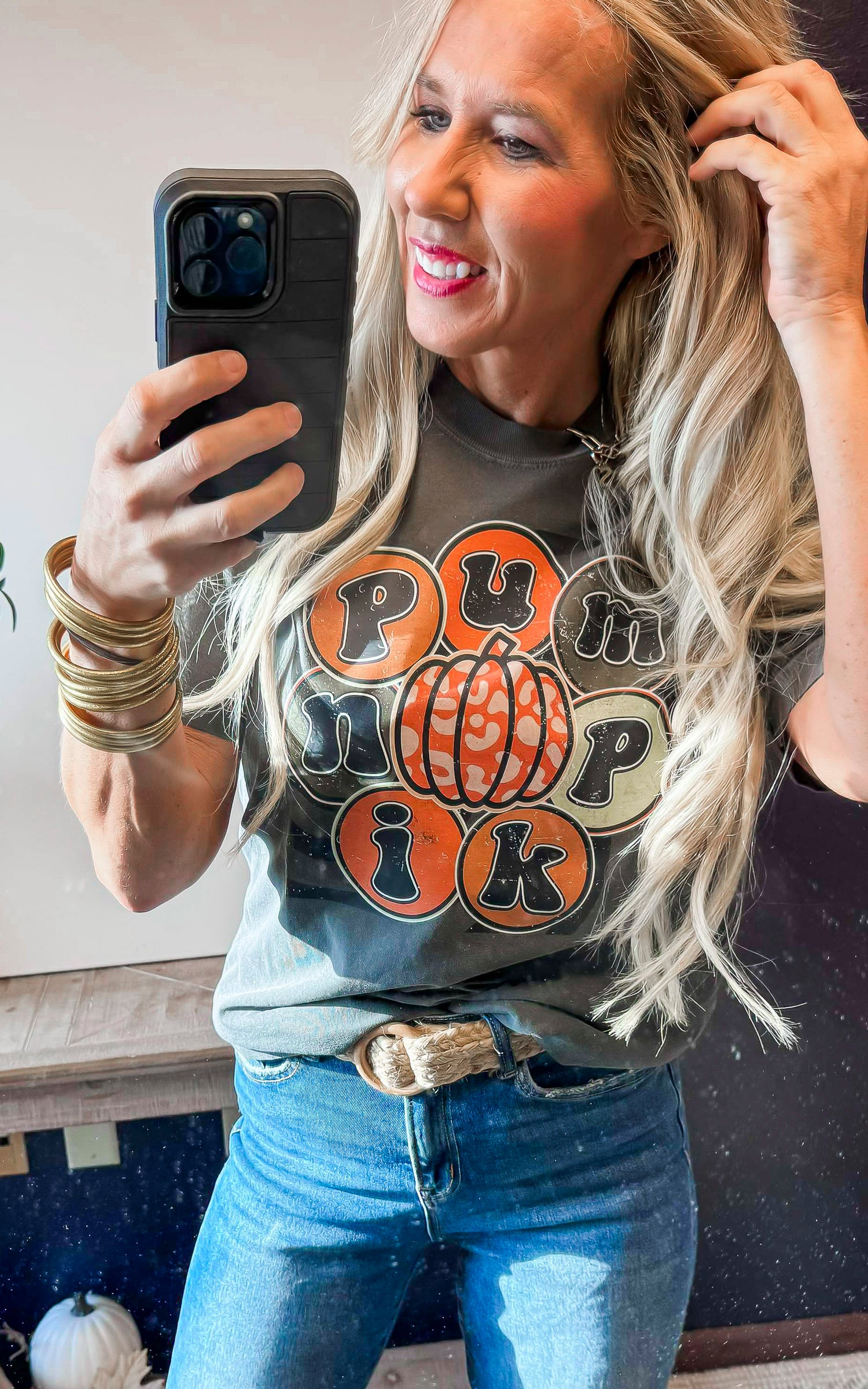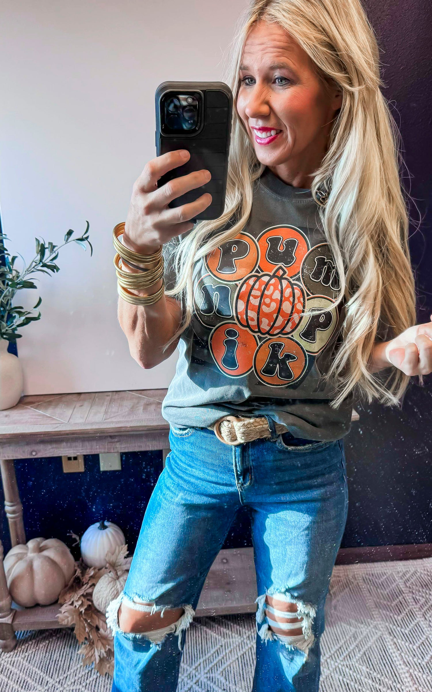 Indulge in the cozy and stylish comfort of our Pumpkin Tee Garment Dyed Graphic T-shirt. Made with high-quality materials and dyed for a unique look, this shirt will keep you feeling comfortable and looking great all day long. Perfect for any fall occasion, show off your love for pumpkins with this stylish tee!