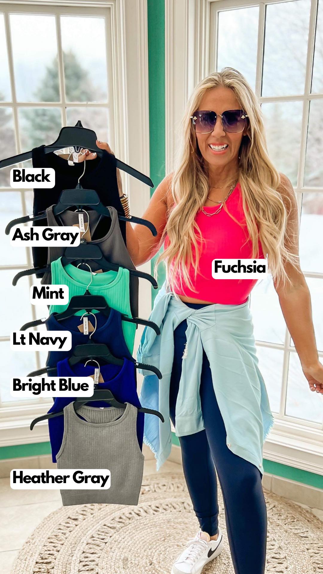 This wide ribbed racerback crop tank top is the perfect combination of feminine and athletic. An airy breathable fabric paired with a sporty wide racerback design make this a versatile piece that you can wear to the gym, or pair it with some cute sandals and wear it out to dinner!
