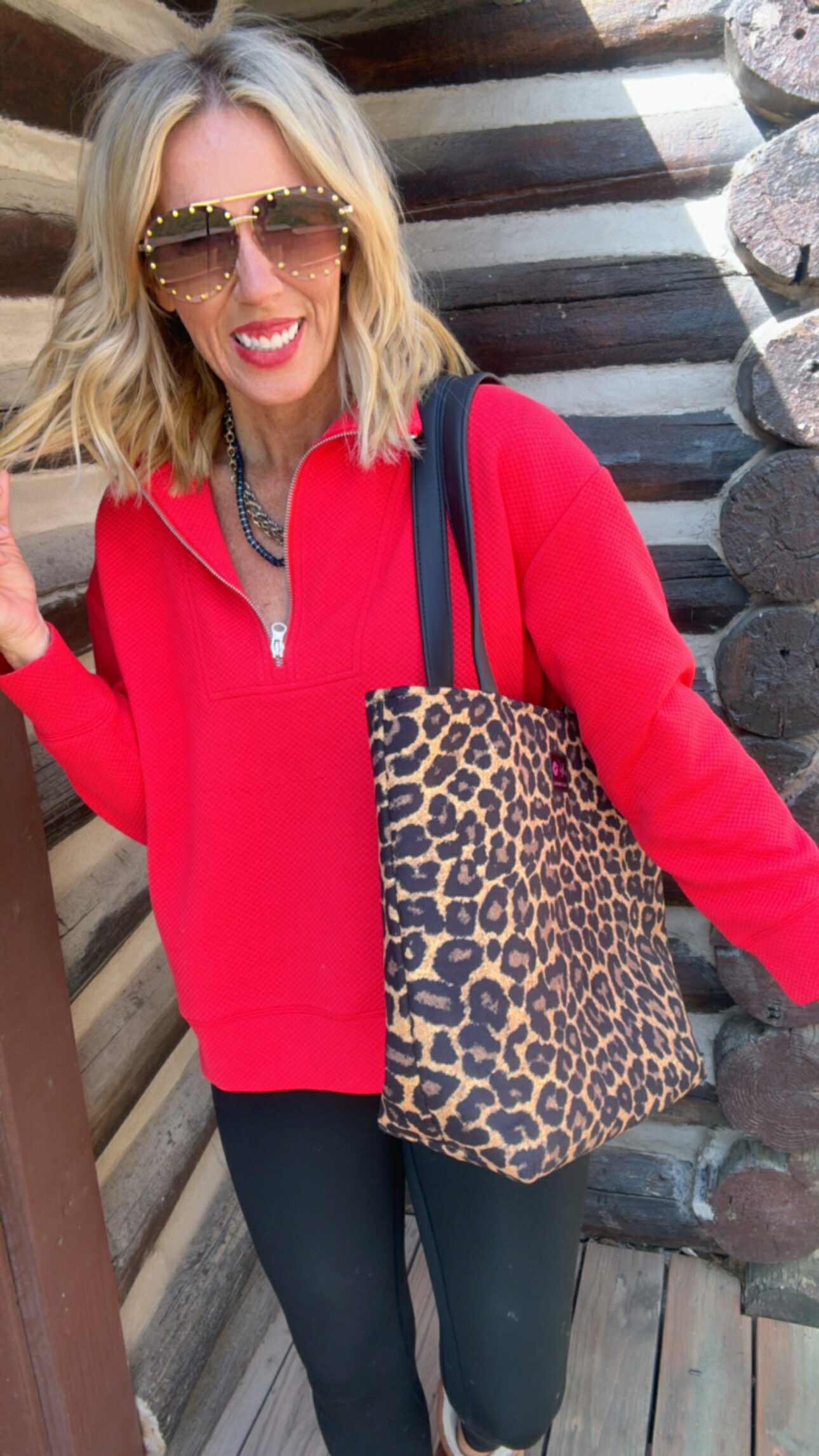 Bring the bold with the Red Quarter Zip Pullover—your new cozy-cool essential that’s as comfy as it is eye-catching. Whether you’re running errands, cheering at the game, or sipping lattes with your besties, this pullover makes looking put-together totally effortless. ❤️✨