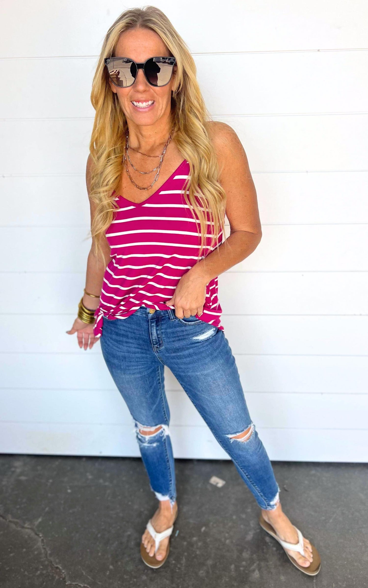 SARA FITS: Sara is 5’7” and a size 5 in denim. She has a 36D bust. She is wearing a size Medium