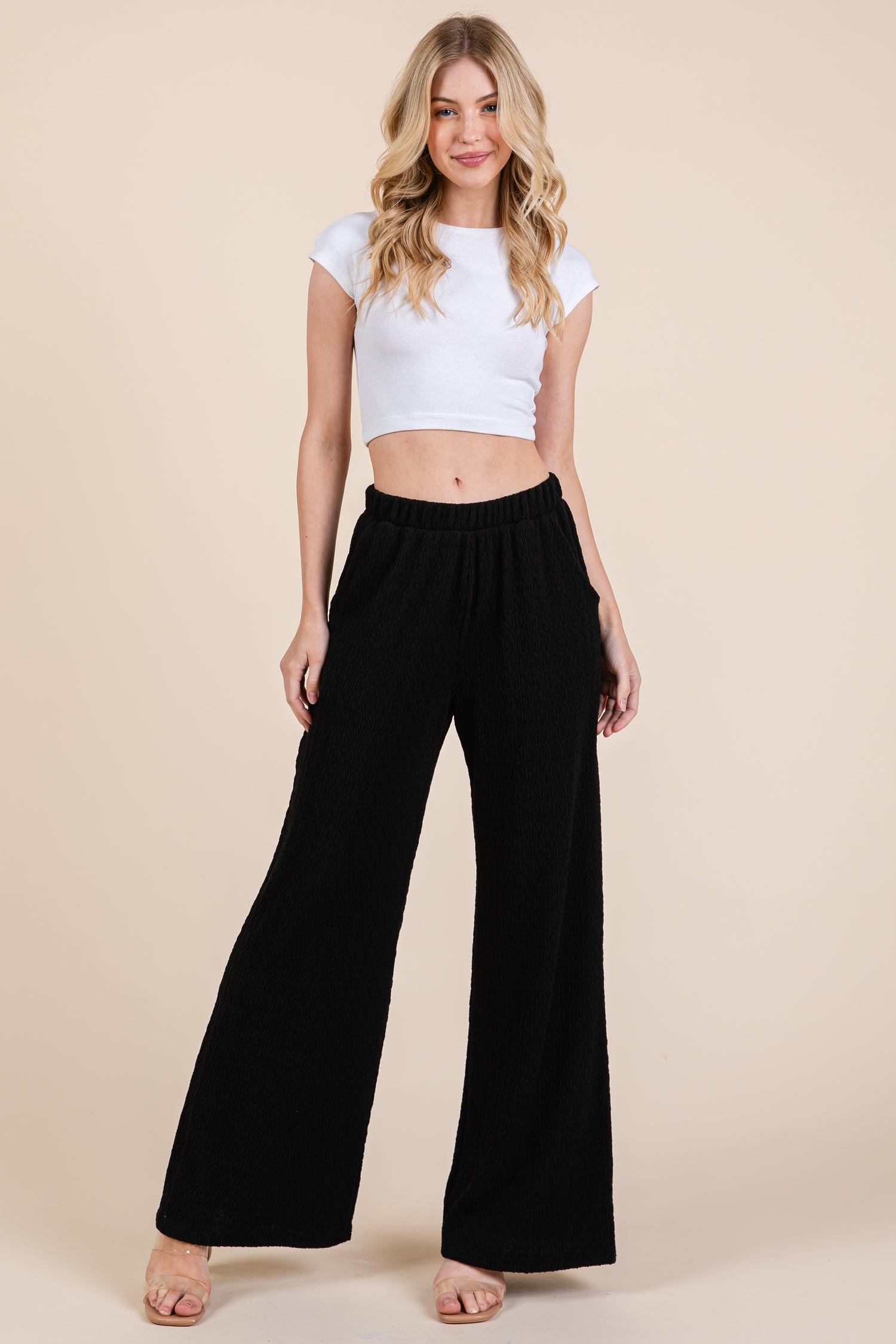 Elastic waistband – pull-on ease with all-day comfort (yes, even after brunch).