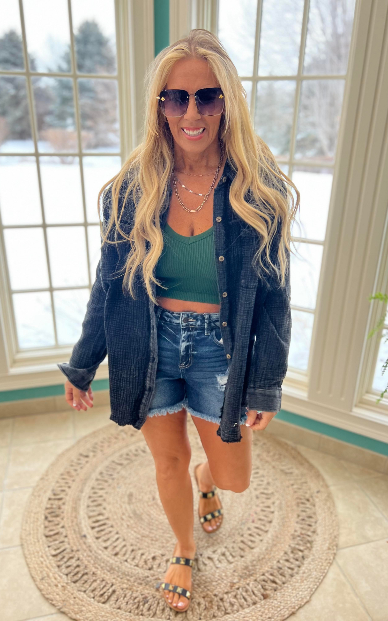 SARA FITS: Sara is 5’7” and a size 7 in denim. She has a 36D bust. She is wearing a size Medium