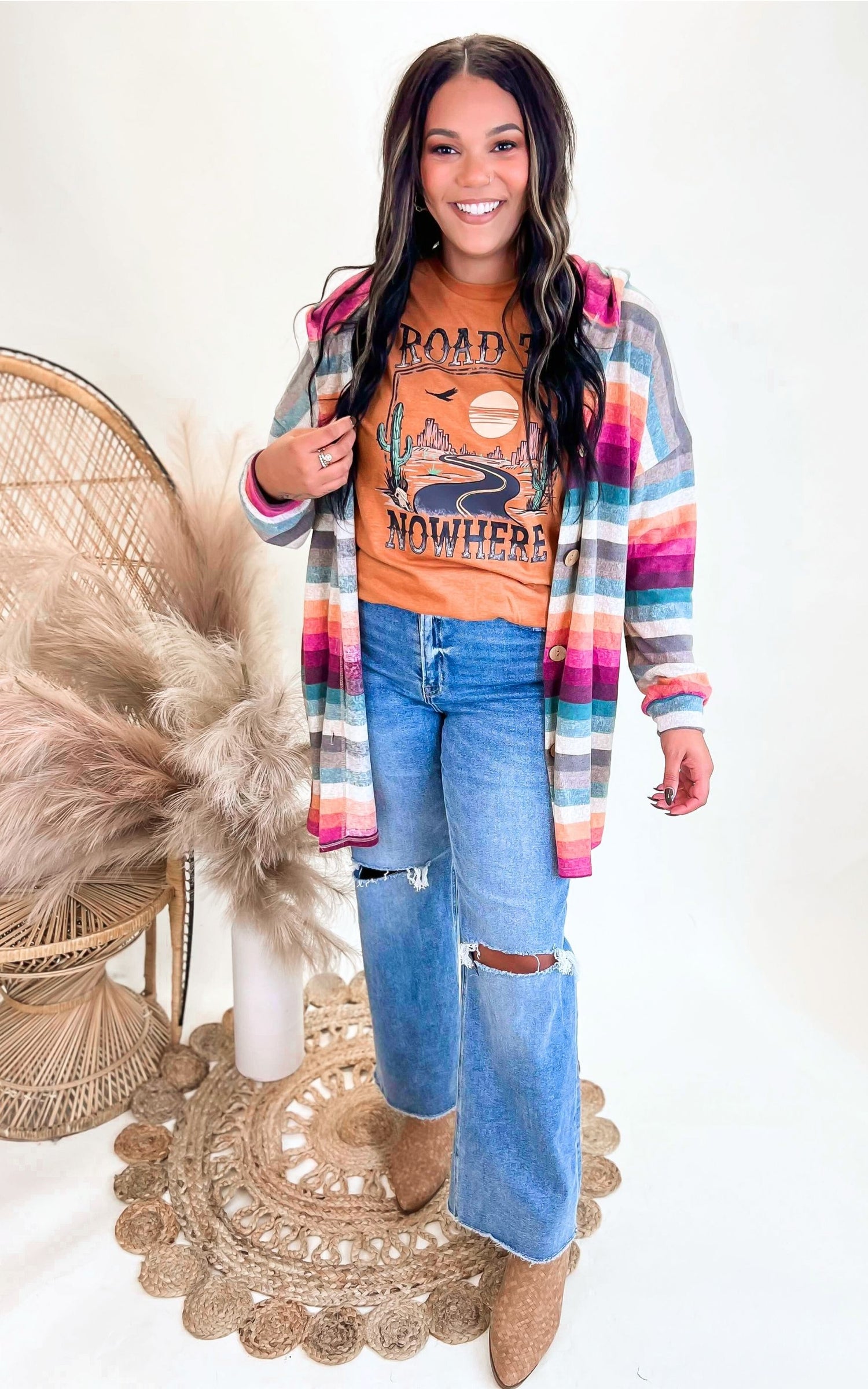 Take a literal road trip with this trendy t-shirt. Featuring a graphic of a winding road to nowhere (but looking good!), this shirt is perfect for any adventure seeker. Made of soft cotton, it's comfortable enough for long drives or lazy days at home.
