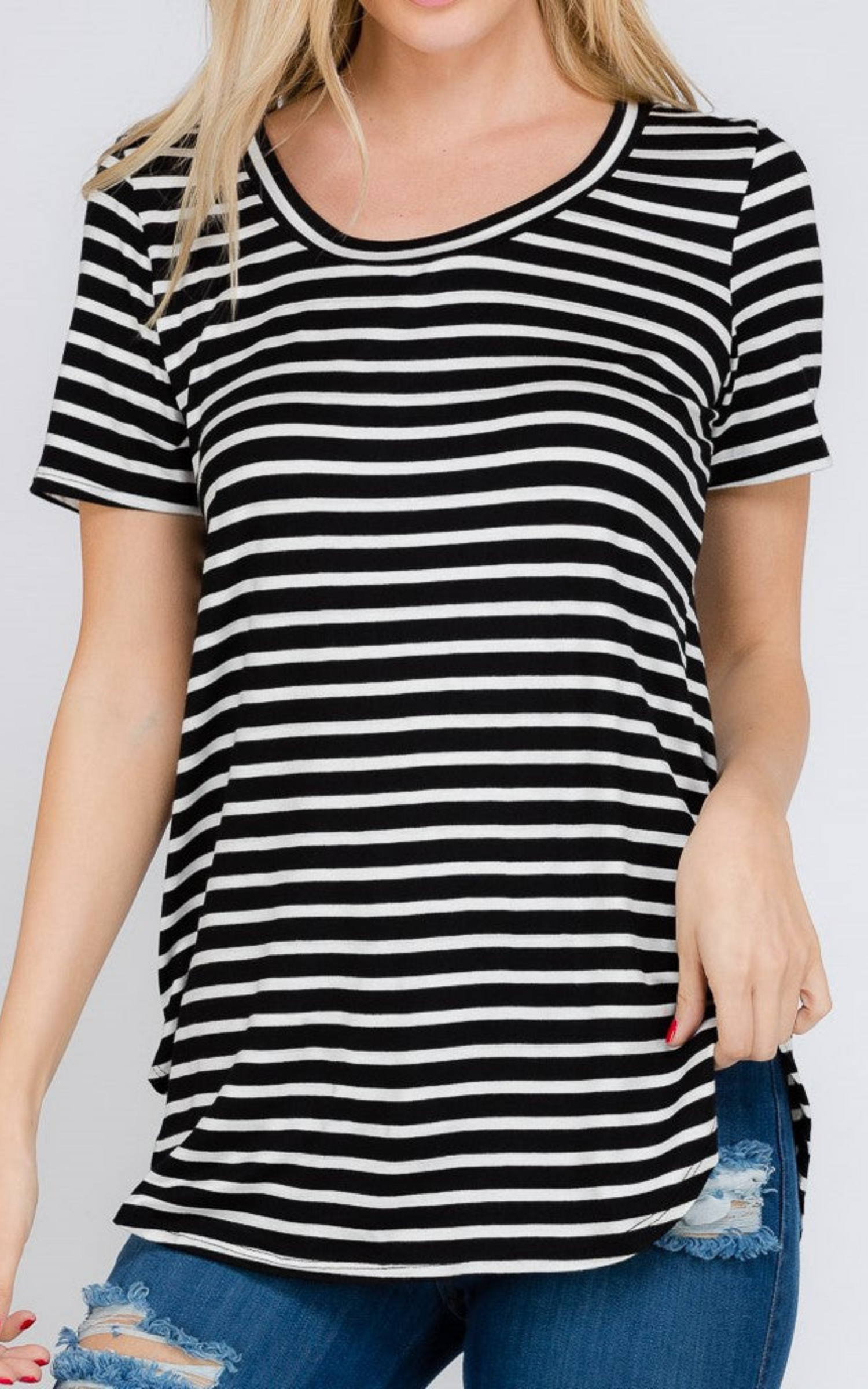 Striped Round Neck Short Sleeve Top - Final Sale**