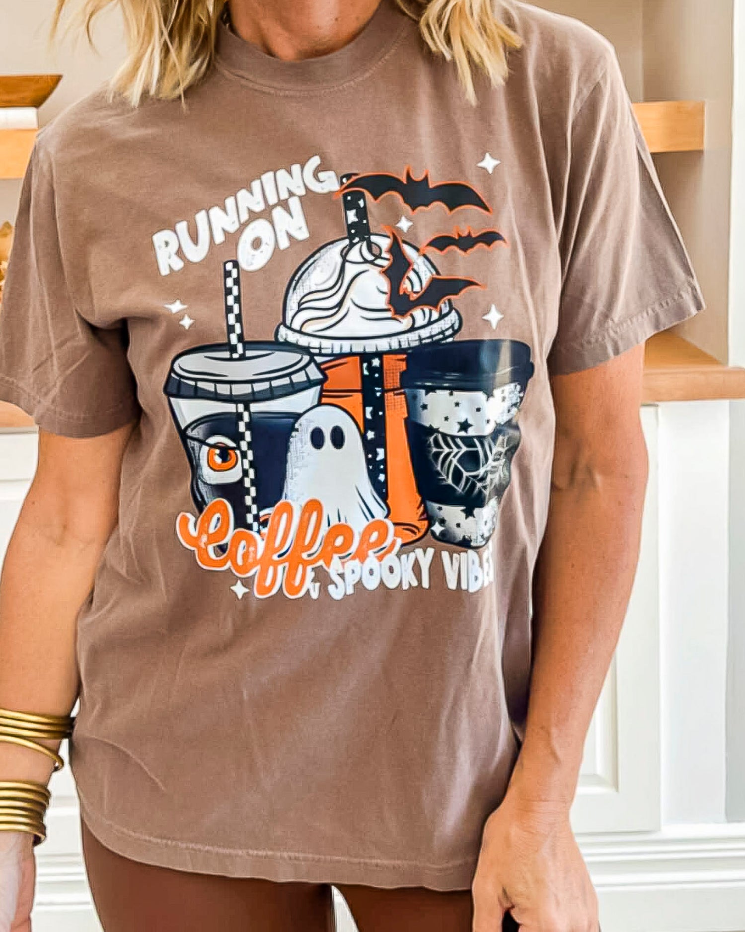 Running On Coffee Spooky Vibes Garment Graphic T-shirt - Final Sale