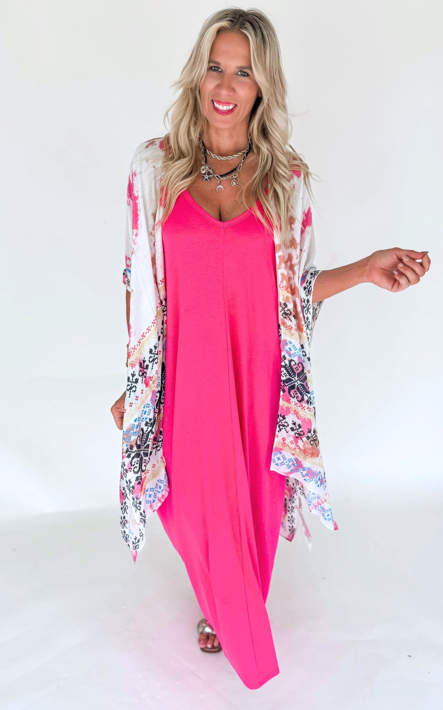 A must-have for your next trip to the beach, this V-neck cami maxi dress is designed with side pockets and adjustable straps to take you from day to night in style.