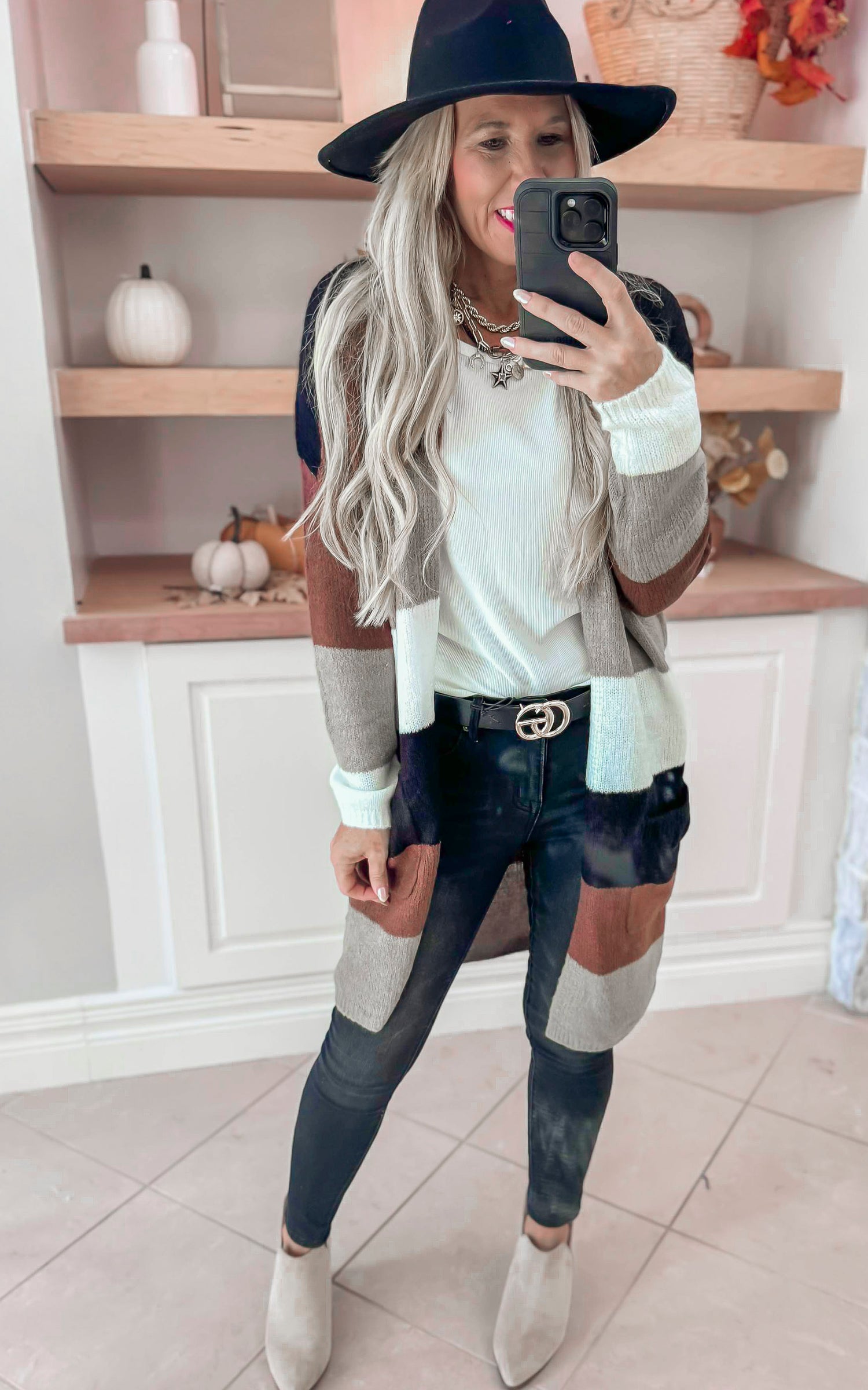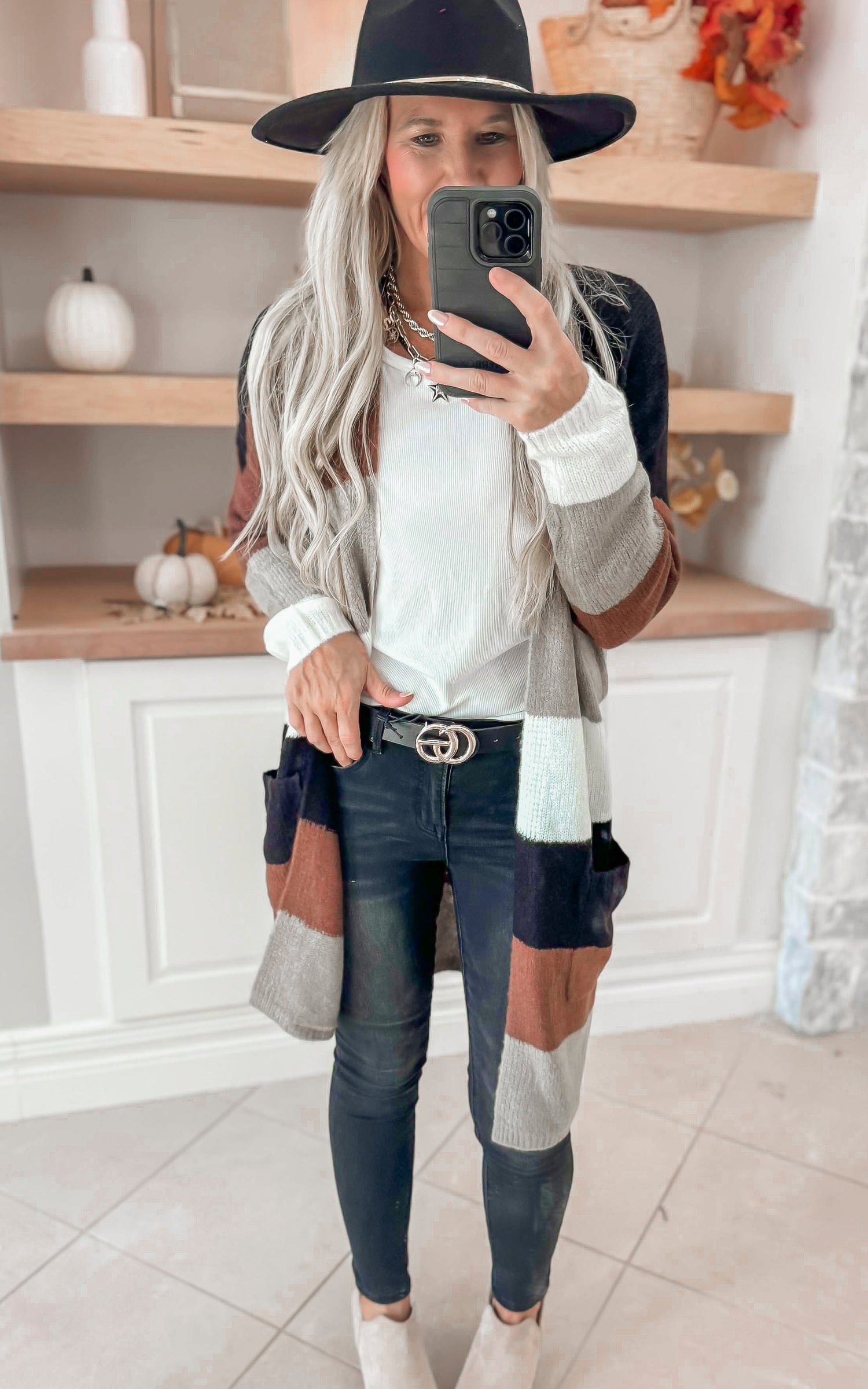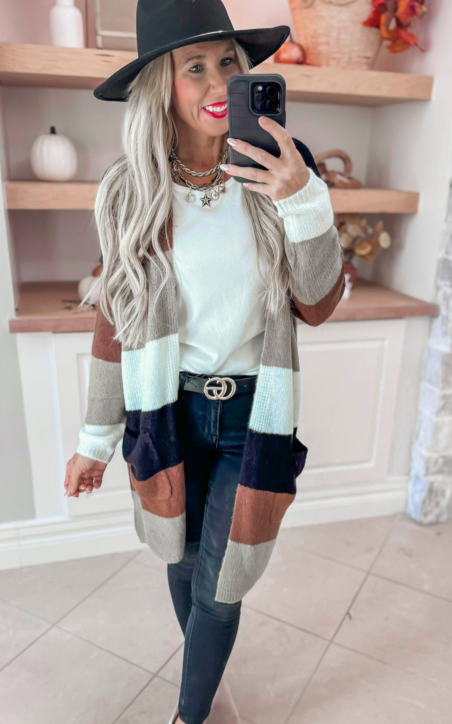 Shades of August Long Colorblock Cardigan - Brown - Final Sale