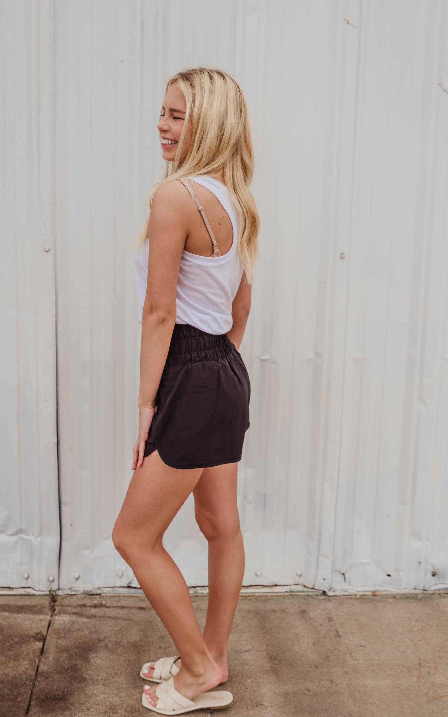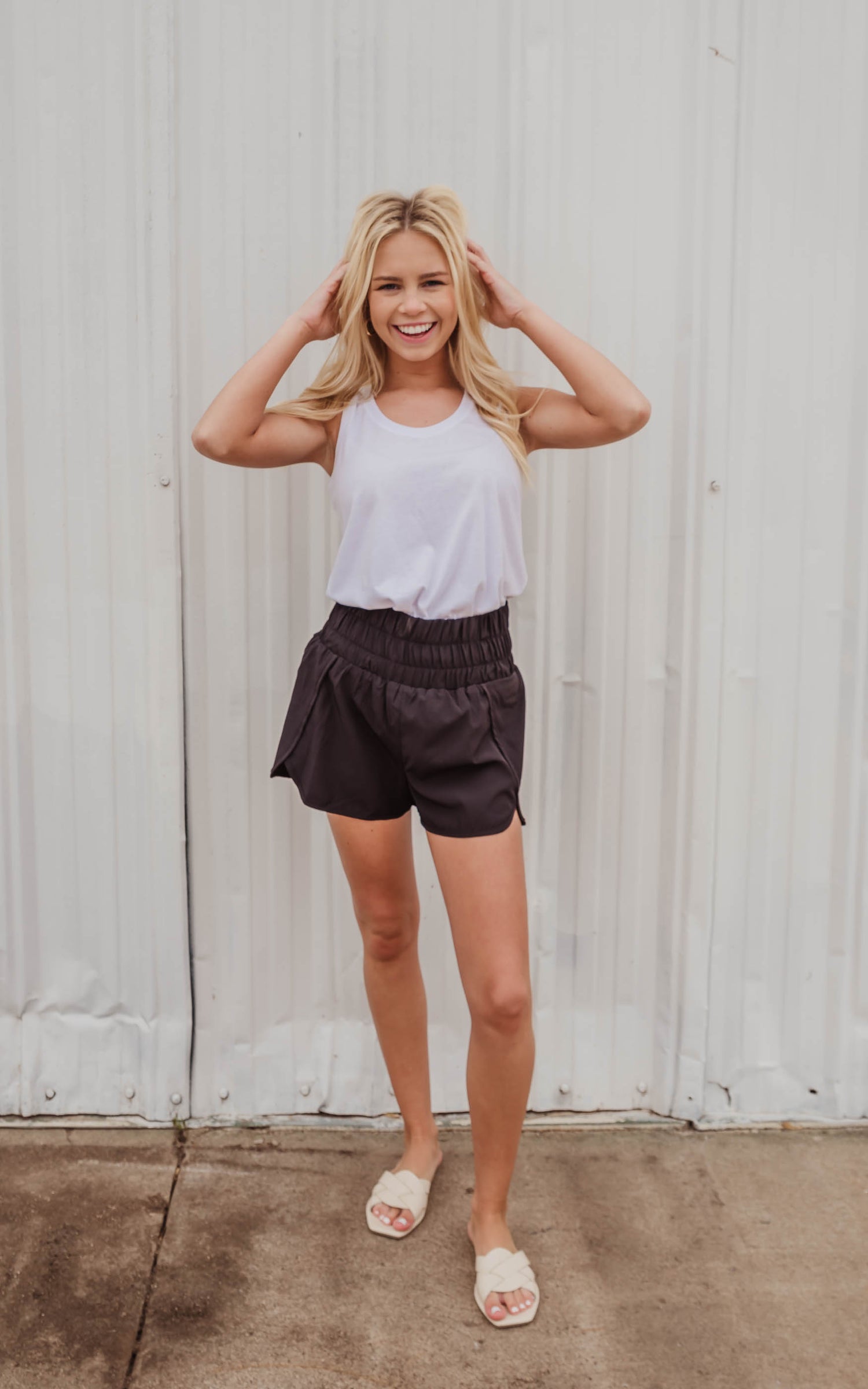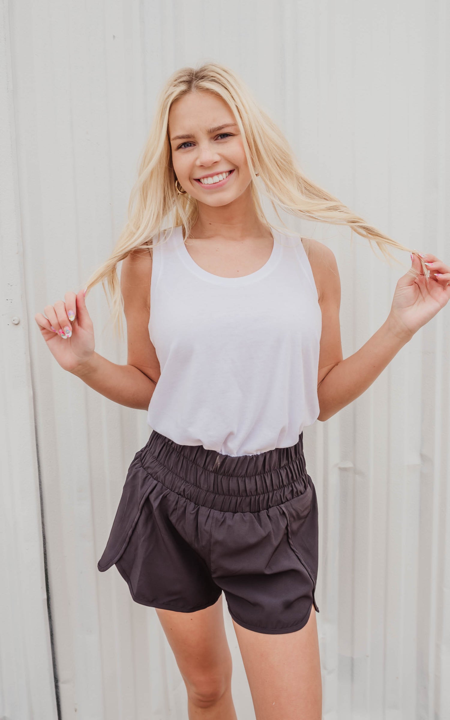These Smocked Waist Running Shorts are thee trend of this Summer. Whether you are styling these alone or over some biker shorts these windbreaker style shorts are going to be a favorite piece.