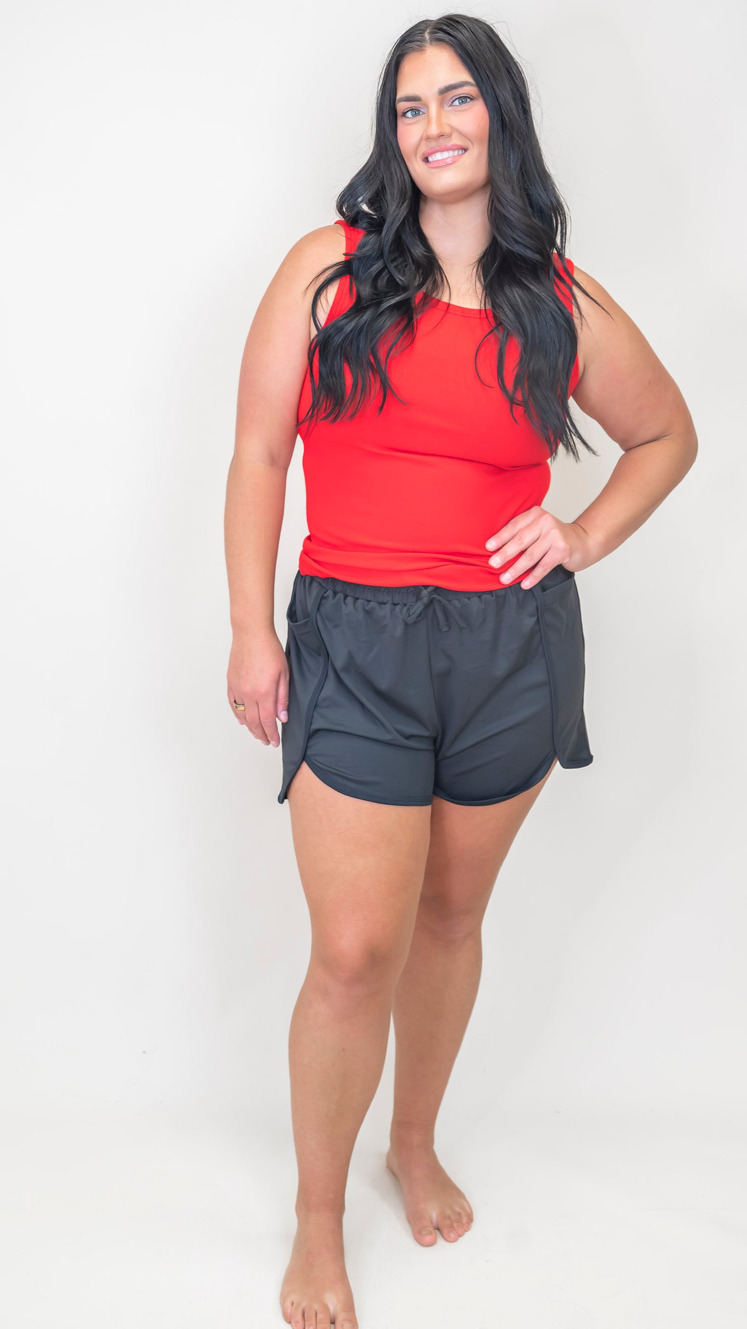 Made with a lightweight, quick-dry fabric that feels like a breeze (even when you're breaking a sweat), these shorts feature a comfy elastic waistband, built-in inner brief for extra coverage, and a flattering 4” inseam that’s juuust right. Oh, and pockets? Of course.