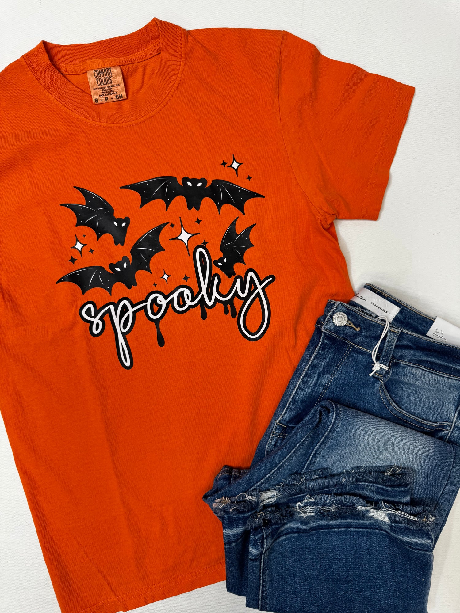 Spooky Bats Orange Garment Graphic T-shirt - Final Sale