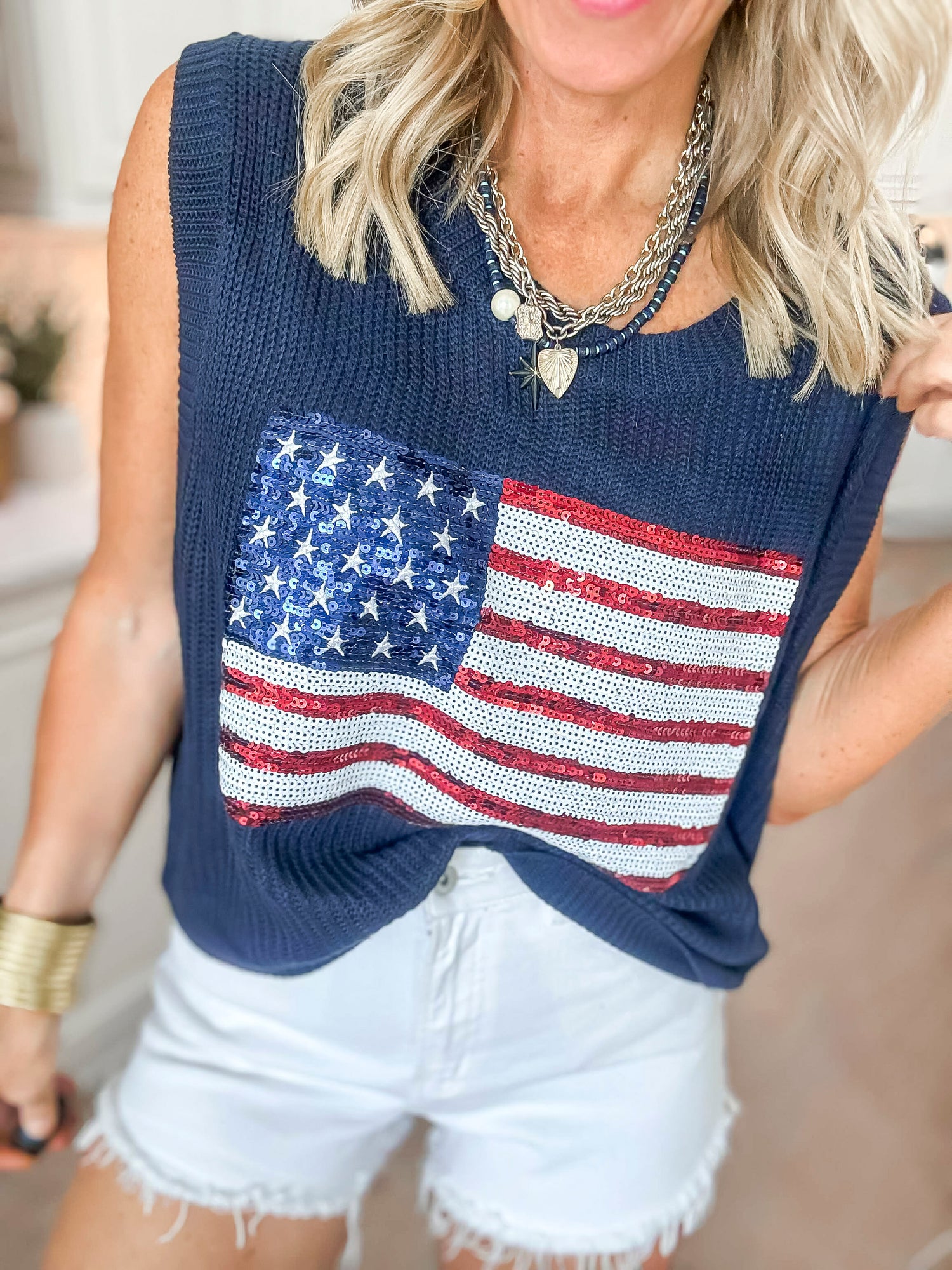 Star Spangled Cutie Sleeveless Knit Top - Final Sale