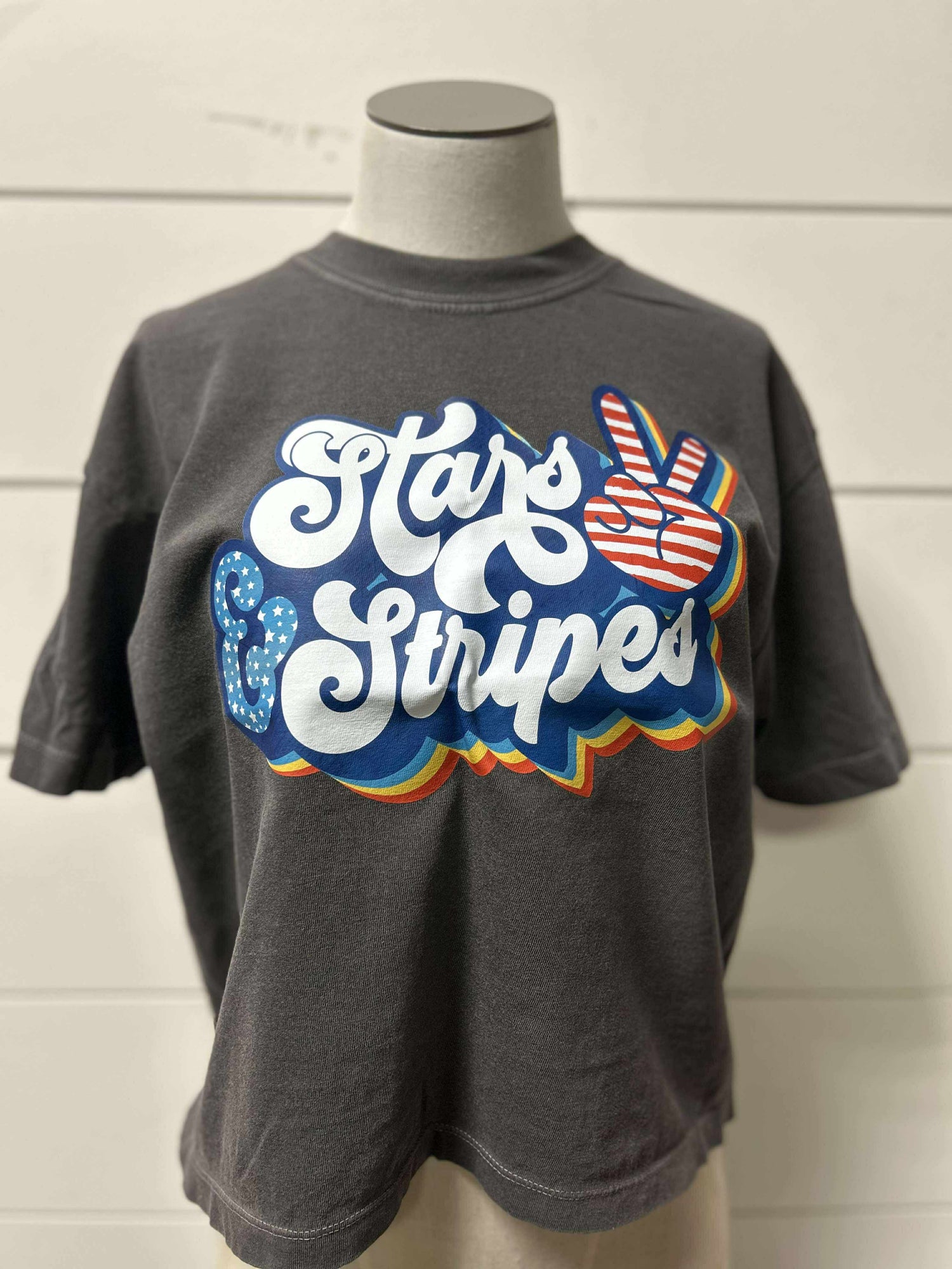 Stars & Stripes Garment Dyed Graphic Boxy Crop T-shirt - Final Sale