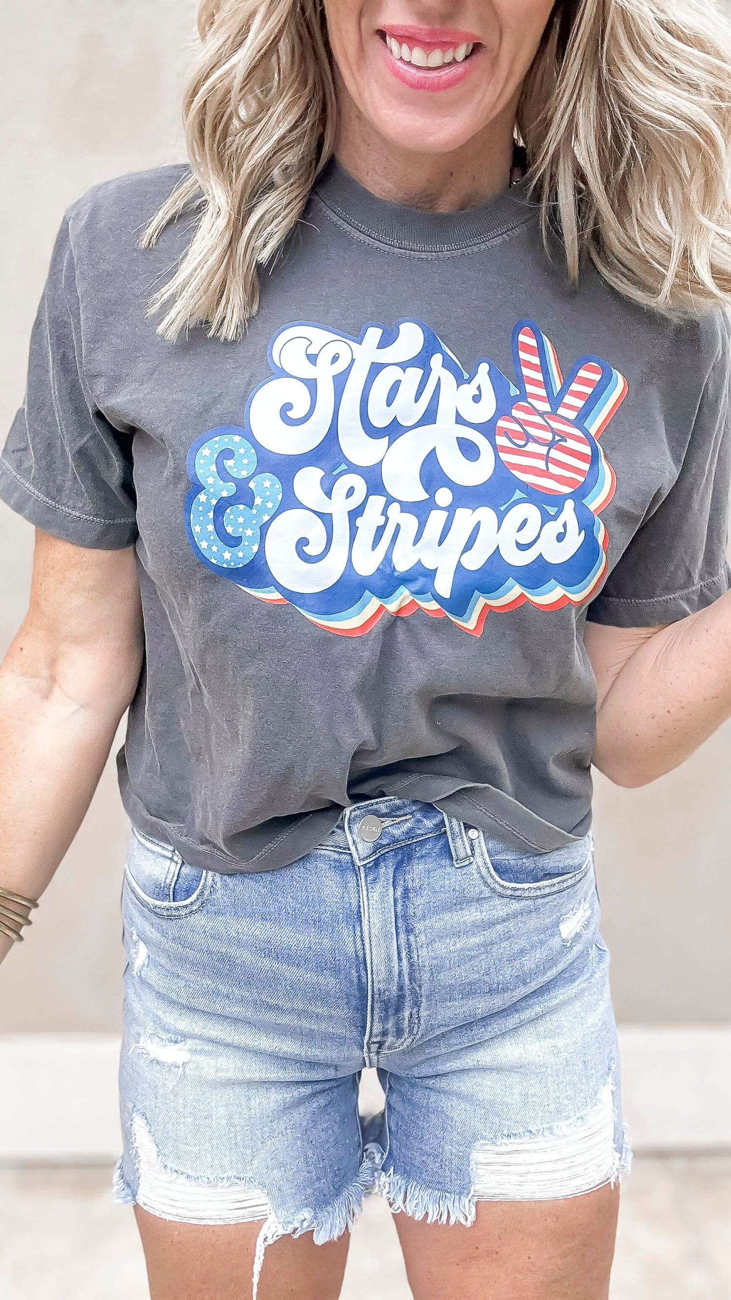 Make a bold statement with our Stars & Stripes Garment Dyed Graphic Boxy Crop T-shirt. Fashionable and patriotic, this top is perfect for any occasion. Lightweight and comfortable, it's the perfect way to show off your love for the USA in style. Available now!