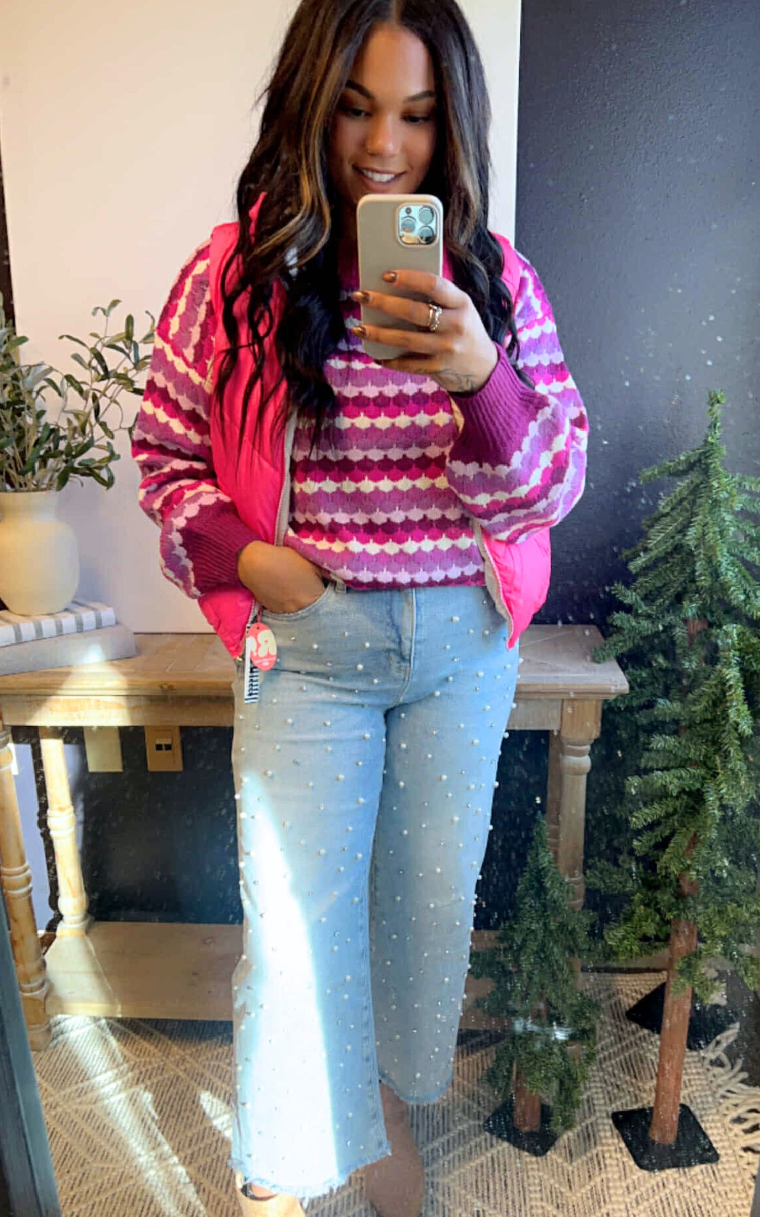Stay cozy in style with our Striped Dot Multicolor Knit Sweater! Made with a trendy striped dot design, this sweater is perfect for any occasion. Preorder now and be the first to sport this must-have item that combines fashion and comfort effortlessly. Don't miss out on this must-have addition to your wardrobe!