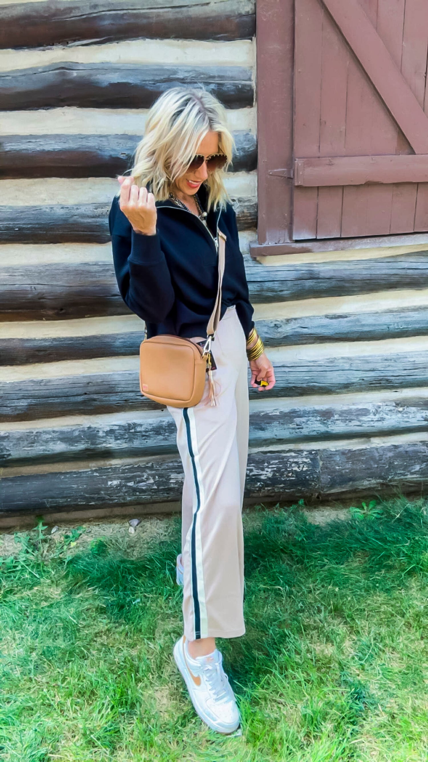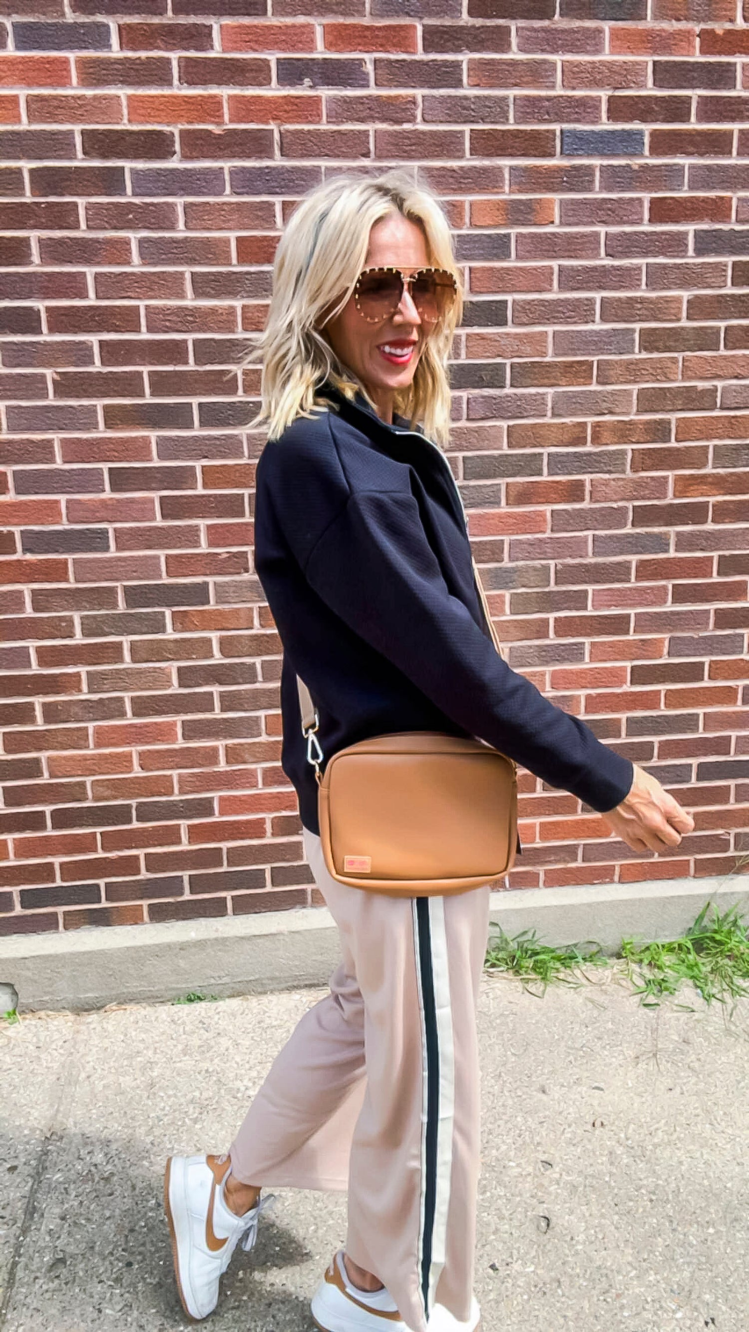 Introducing our "Striped Down Line Pants With Pockets," the perfect blend of comfort and style. These pants feature a sleek striped design and, as the name implies, convenient pockets. Say goodbye to sacrificing fashion for functionality and hello to effortless cool.