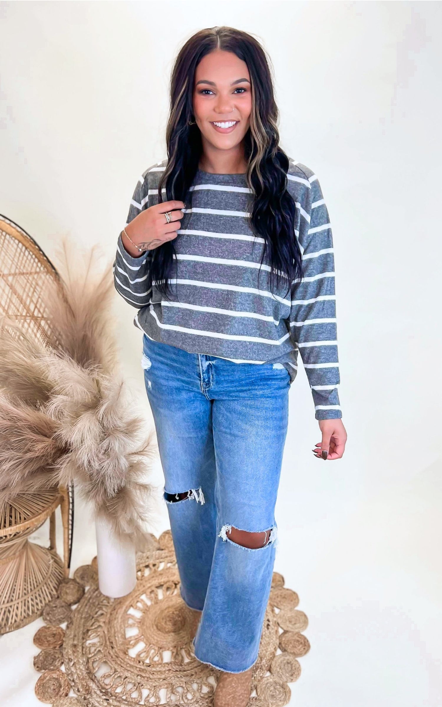 Embrace comfort and style in our Stripes & Chill Oversized Top. With its trendy striped pattern and oversized fit, you'll never want to take it off! Perfect for lounging at home or running errands, this top will keep you looking and feeling great all day long.