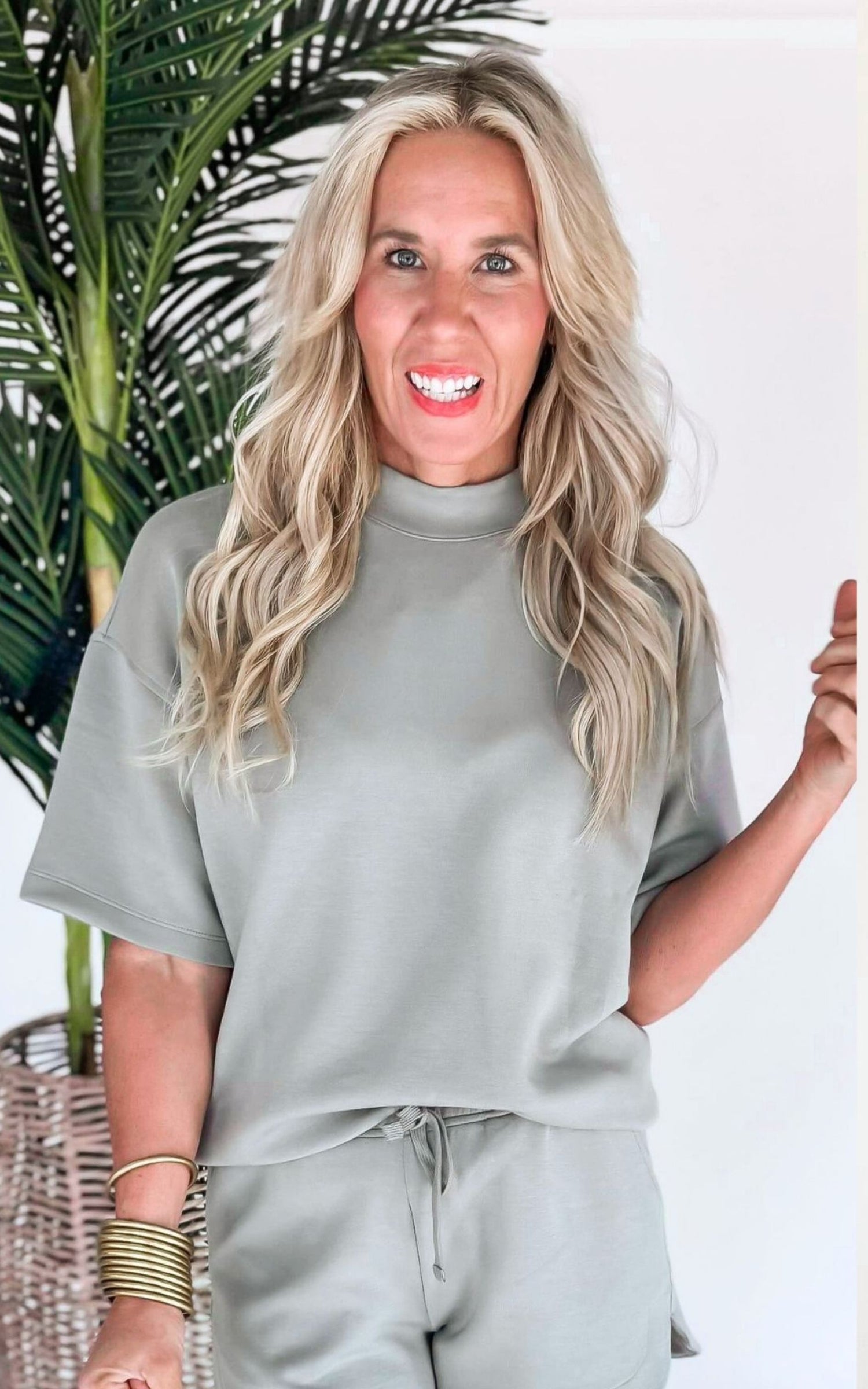 Summer Cool Mock Neck Short Sleeve Top - Final Sale
