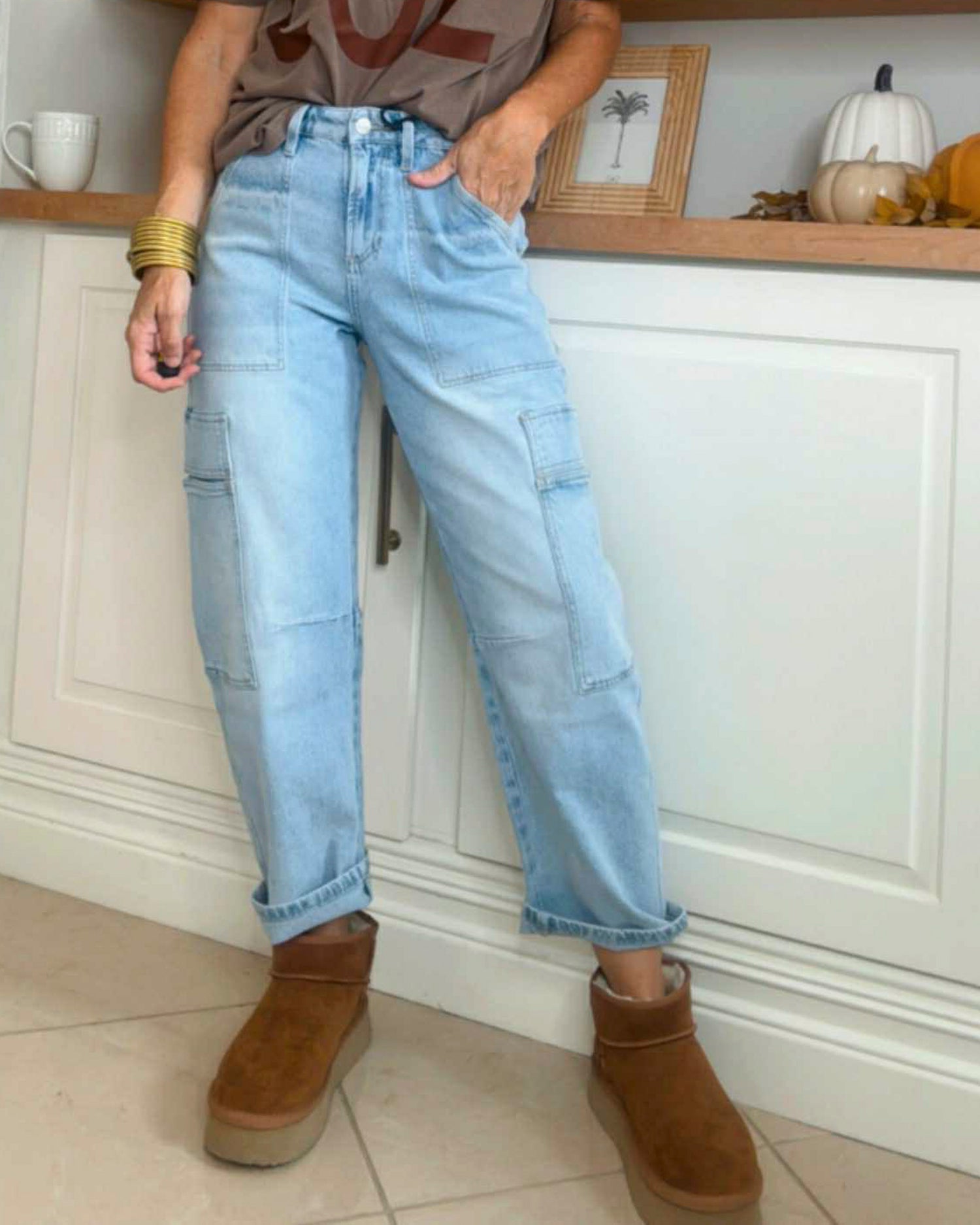 Super High Rise Barrel-leg With Cropped Cargo Denim Jeans | MICA *PREORDER