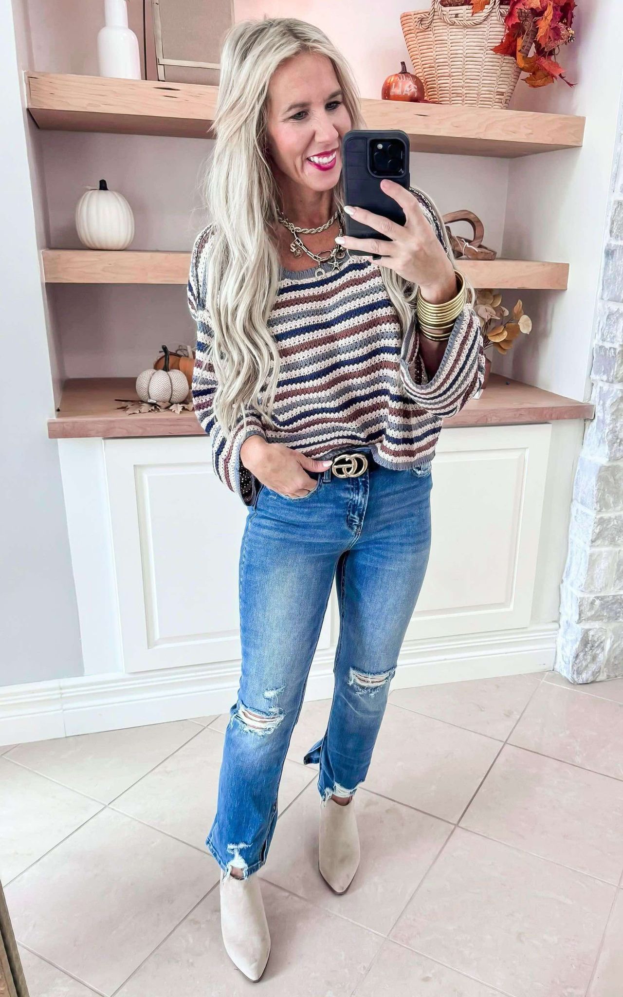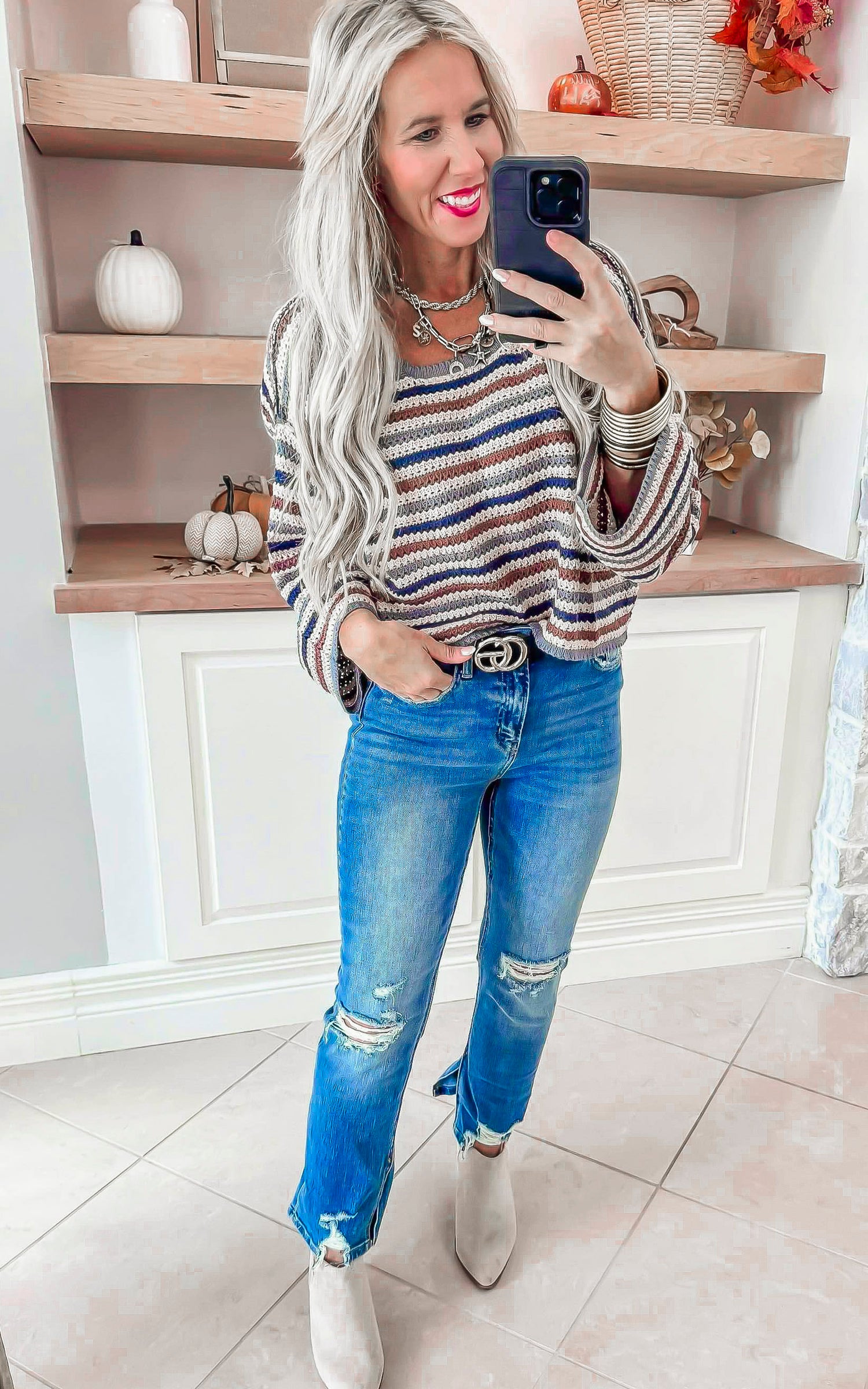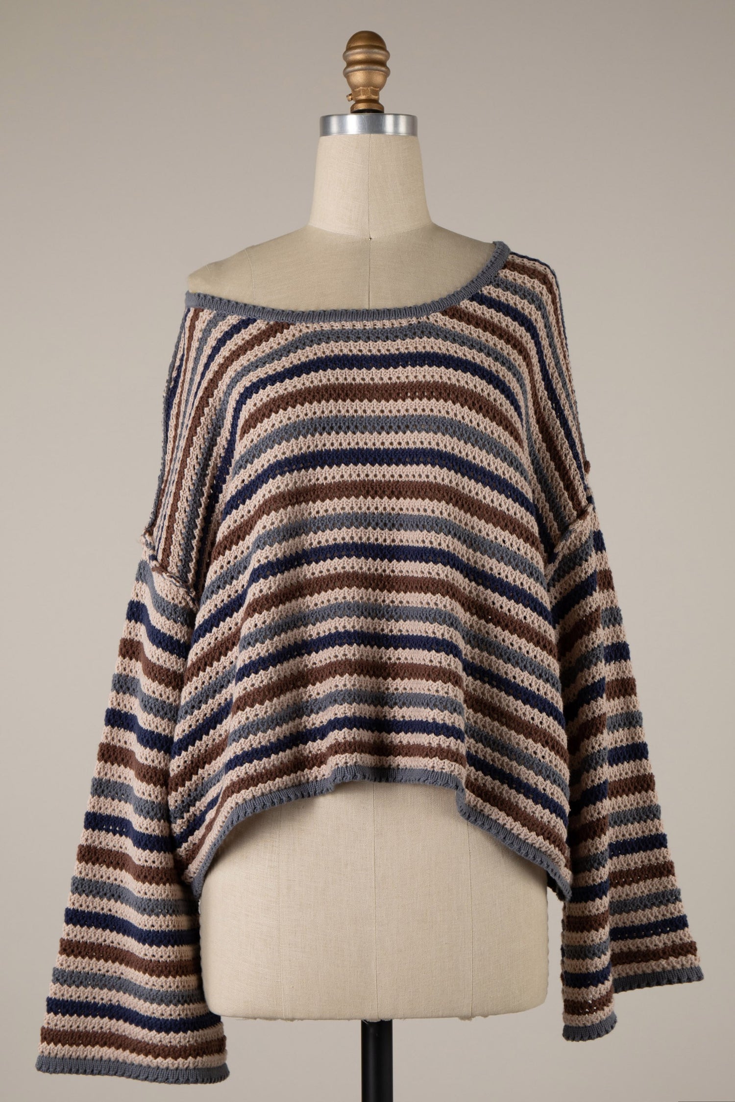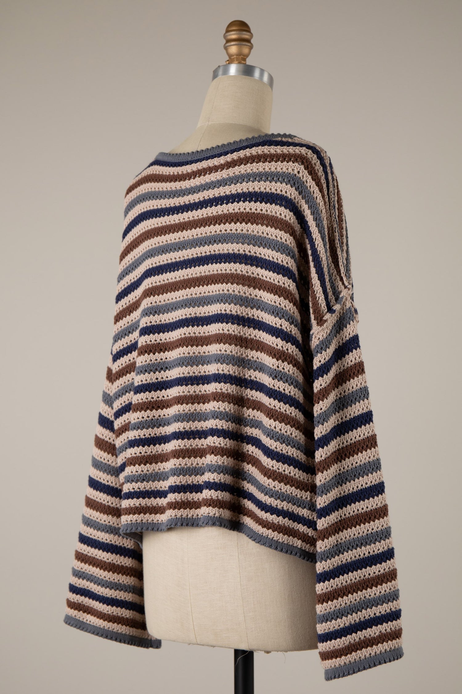 Introducing our new Taupe Crochet Lace Striped Crop Sweater Top - the perfect blend of style and comfort! Made with luxurious crochet lace and featuring chic stripes, this crop top is ideal for any occasion. Stay on trend and elevate your wardrobe with this must-have piece.
