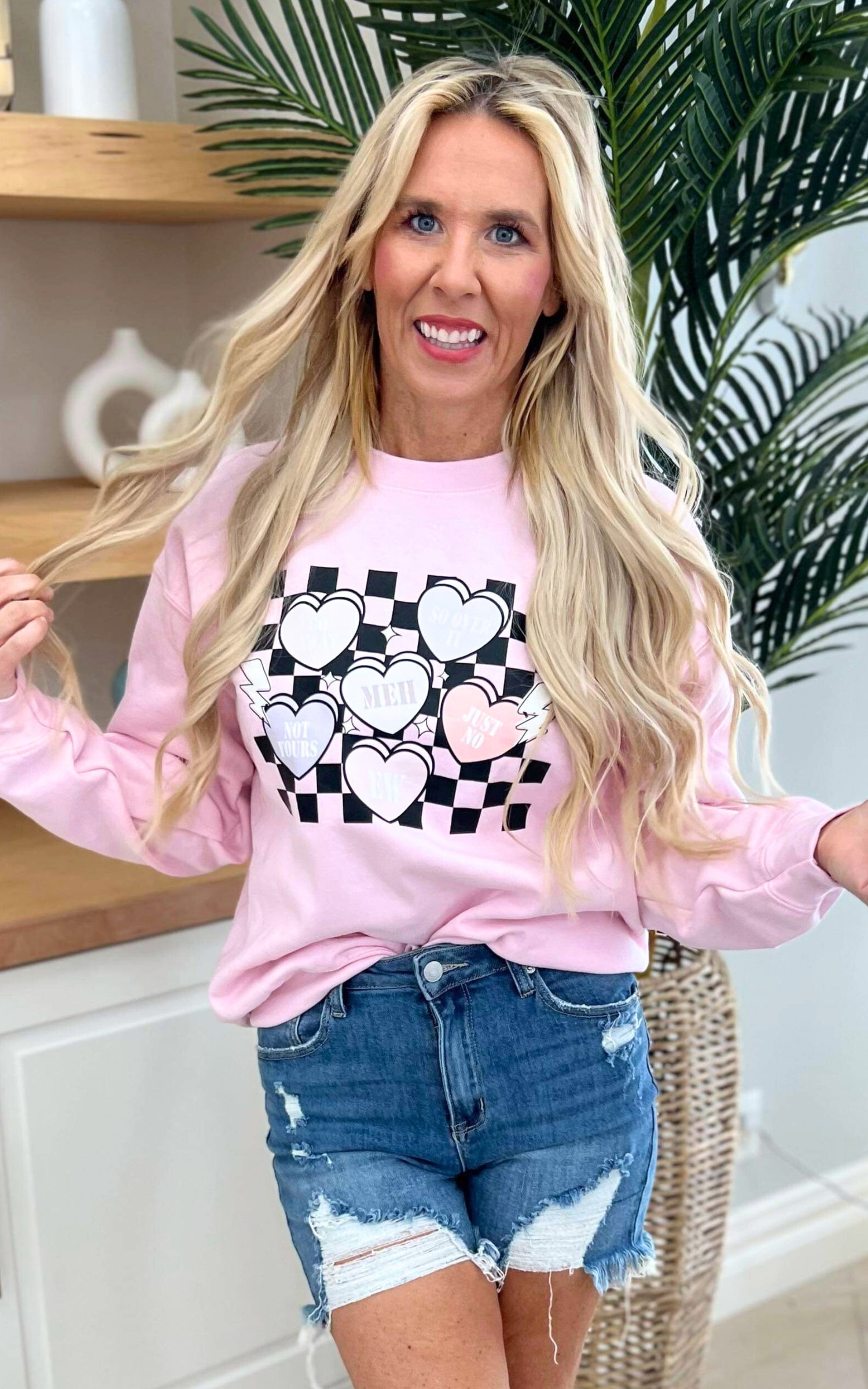 Meh Go Away Candy Hearts Crewneck Sweatshirt