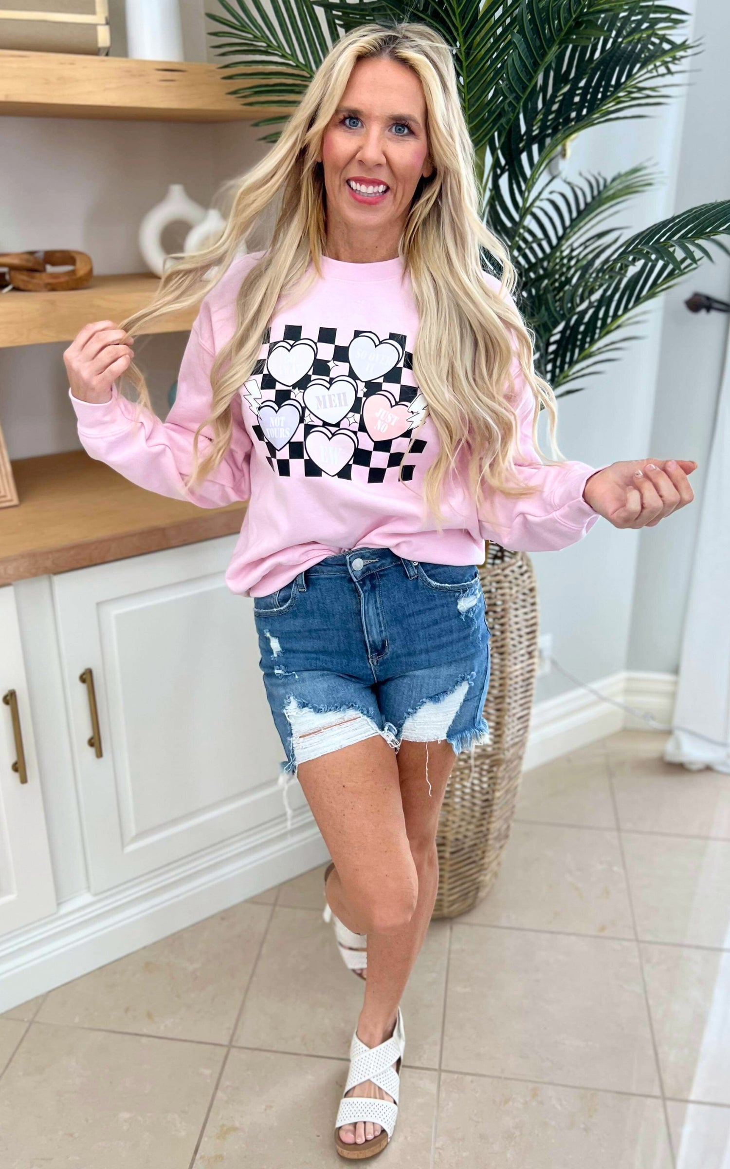Make a statement this Valentine's Day with our It's Just Meh Hearts Crewneck Sweatshirt. Featuring a playful design of "meh" hearts, it's perfect for those who don't take themselves too seriously. With a cozy crewneck and high-quality material, you'll stay comfortable and stylish all day long. Don't settle for the cliché, embrace the quirky!