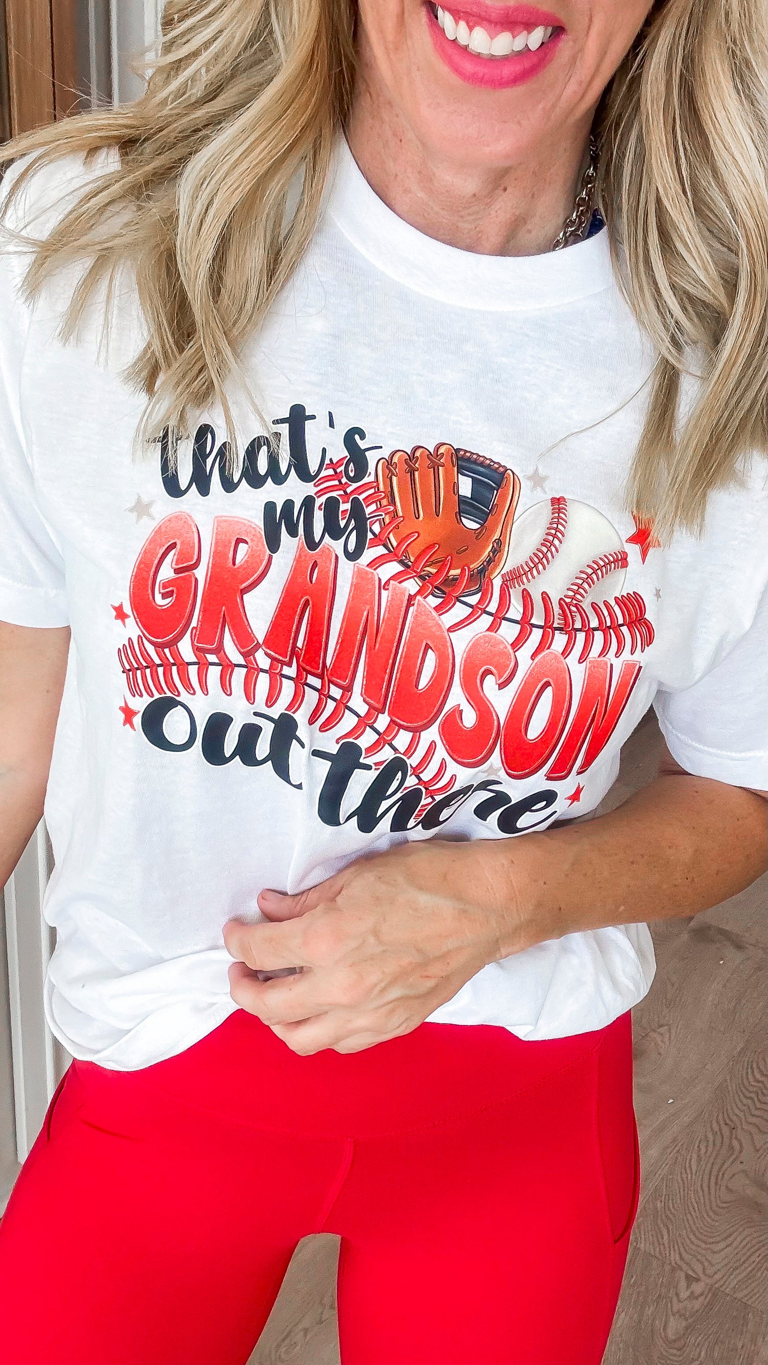 Score a home run with this That's My Grandson Baseball Graphic T-shirt. Show off your pride as a grandparent and support your grandson's love for baseball with this witty and stylish shirt. Perfect for any game day or family event, this shirt is a home run in both comfort and design.