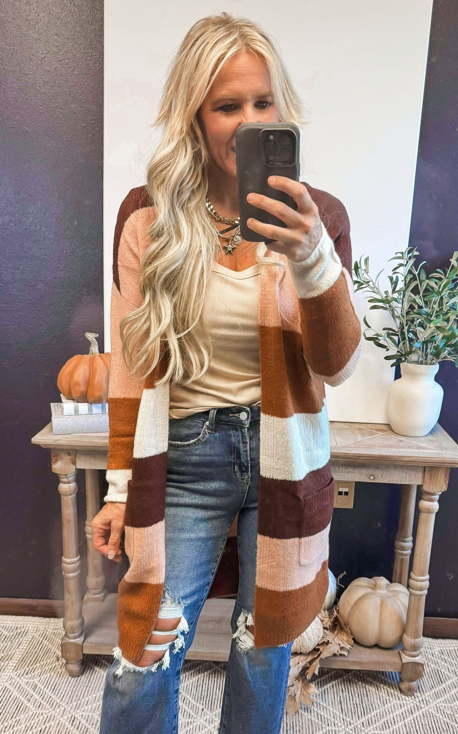 The Blush & Spice Cozy Long Colorblock Cardigan - Final Sale