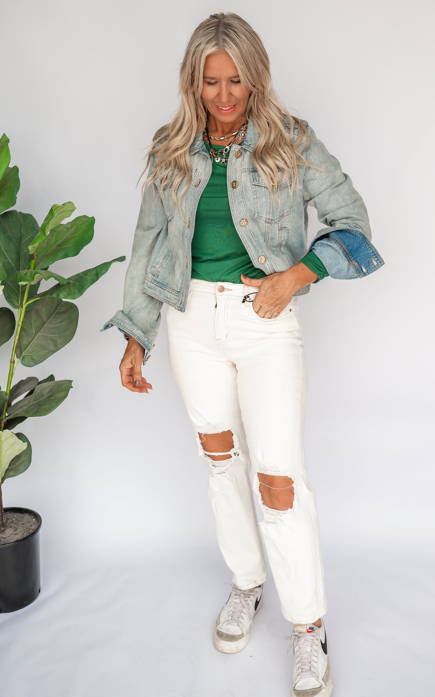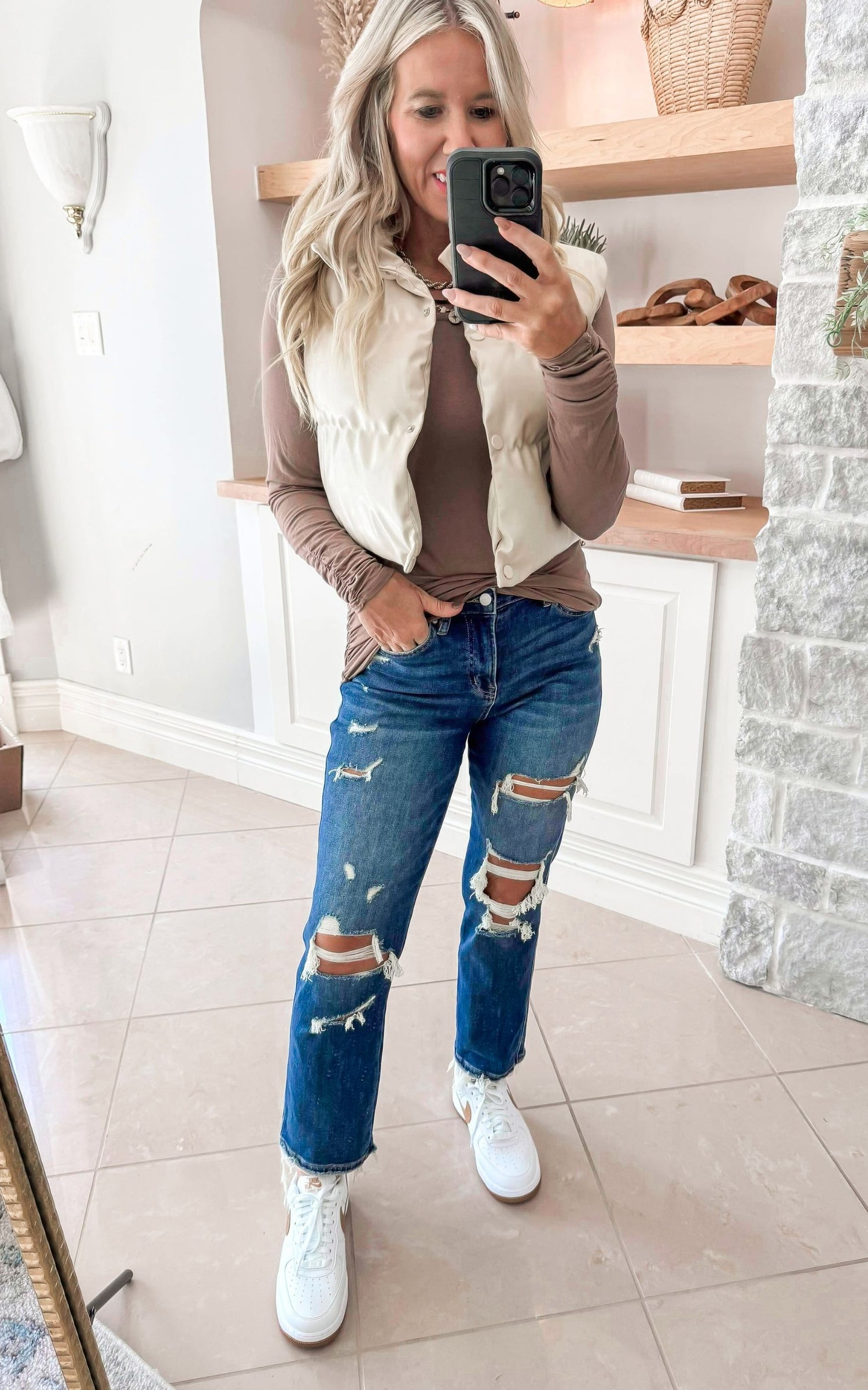 - Her store denim size is 14, her BHB denim size is 13/31.