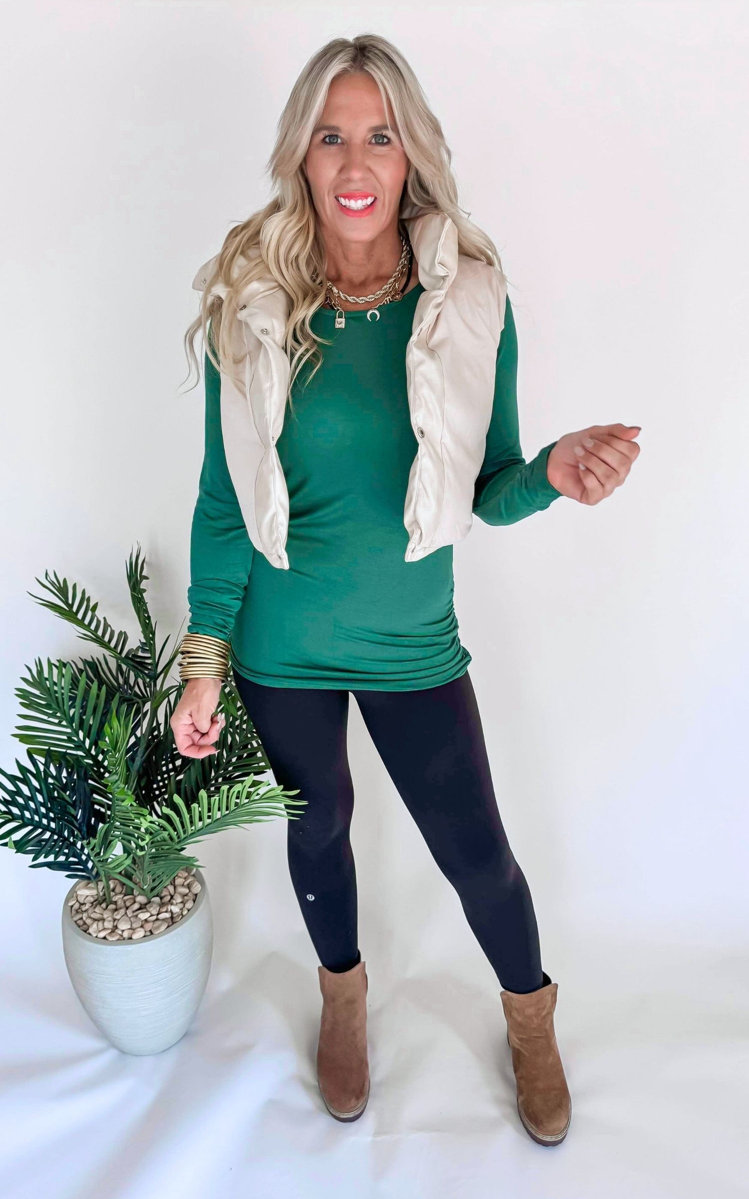 Meet your new wardrobe MVP: the Essential Tunic Top! 🌟 Crafted from a feather-light knit, it’s your go-to for effortless style. With side ruching that flatters every curve, it’s perfect for those “leggings as pants” days. Whether you’re running errands or running the world, this tunic’s got your back—literally! Slip it on and let the compliments roll in.