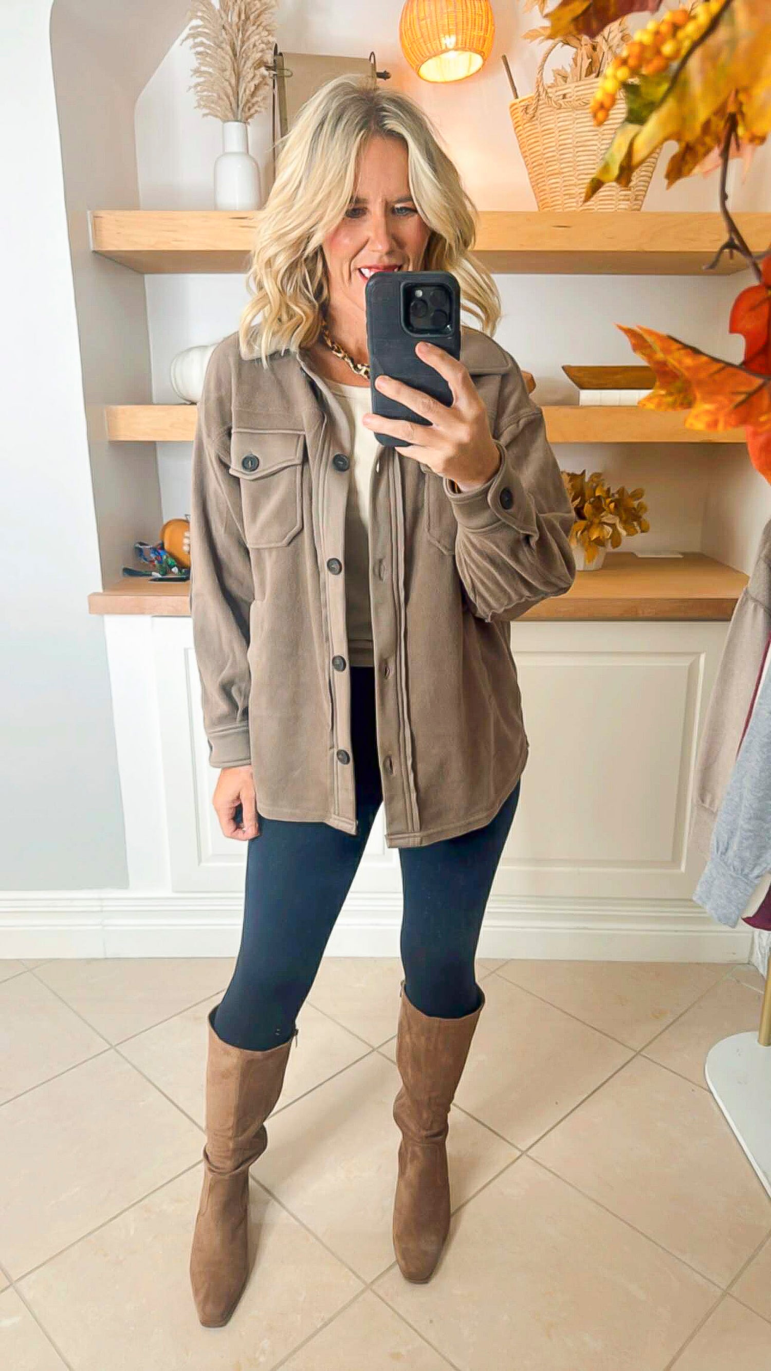 💡 Style inspo: Toss it over a graphic tee with denim for an effortless daytime look, or layer it with leggings and boots for those crisp fall mornings.