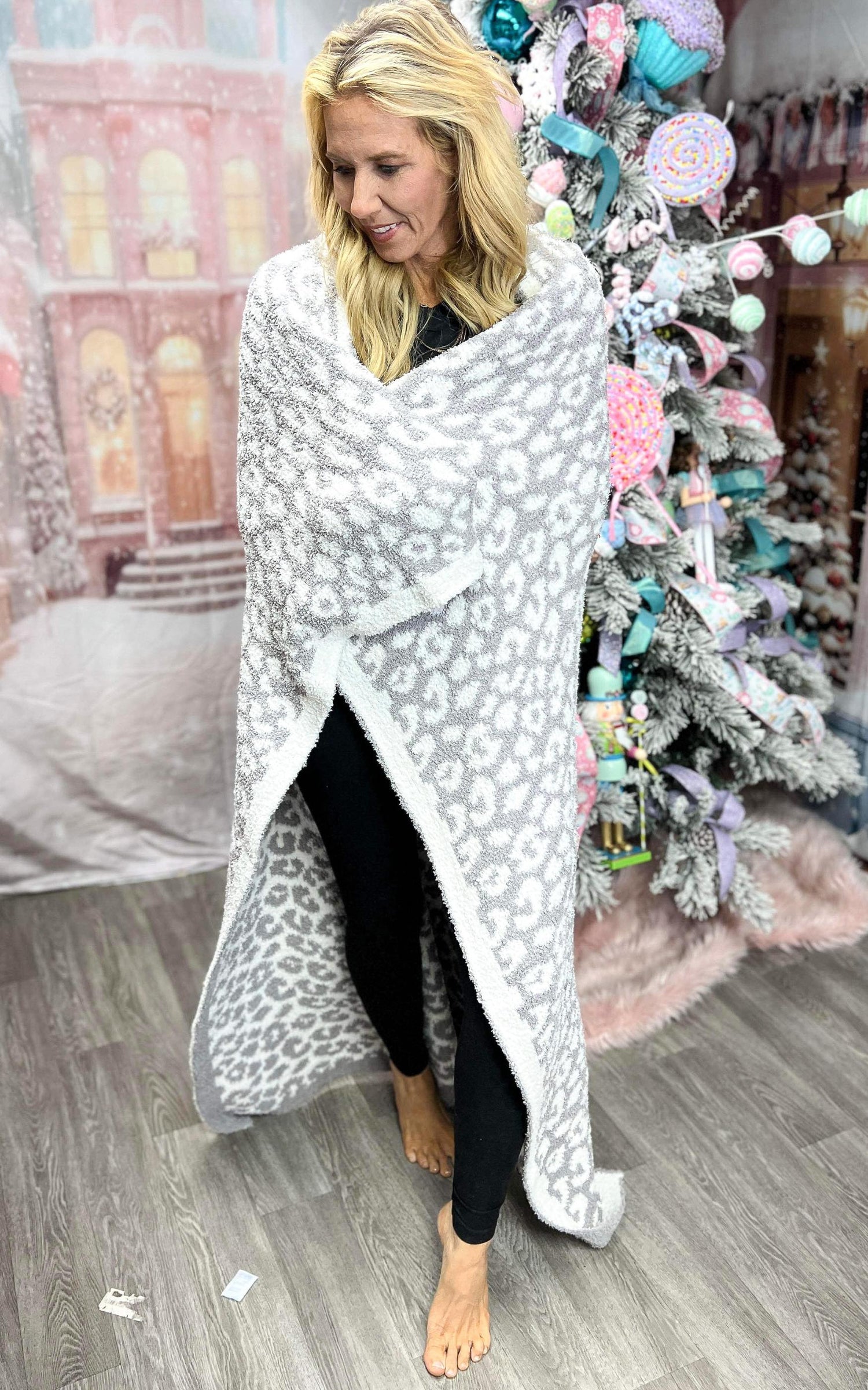 The Grey/Ivory Leopard Dreamer Blanket by Salty Wave -*DEAL-FINAL SALE