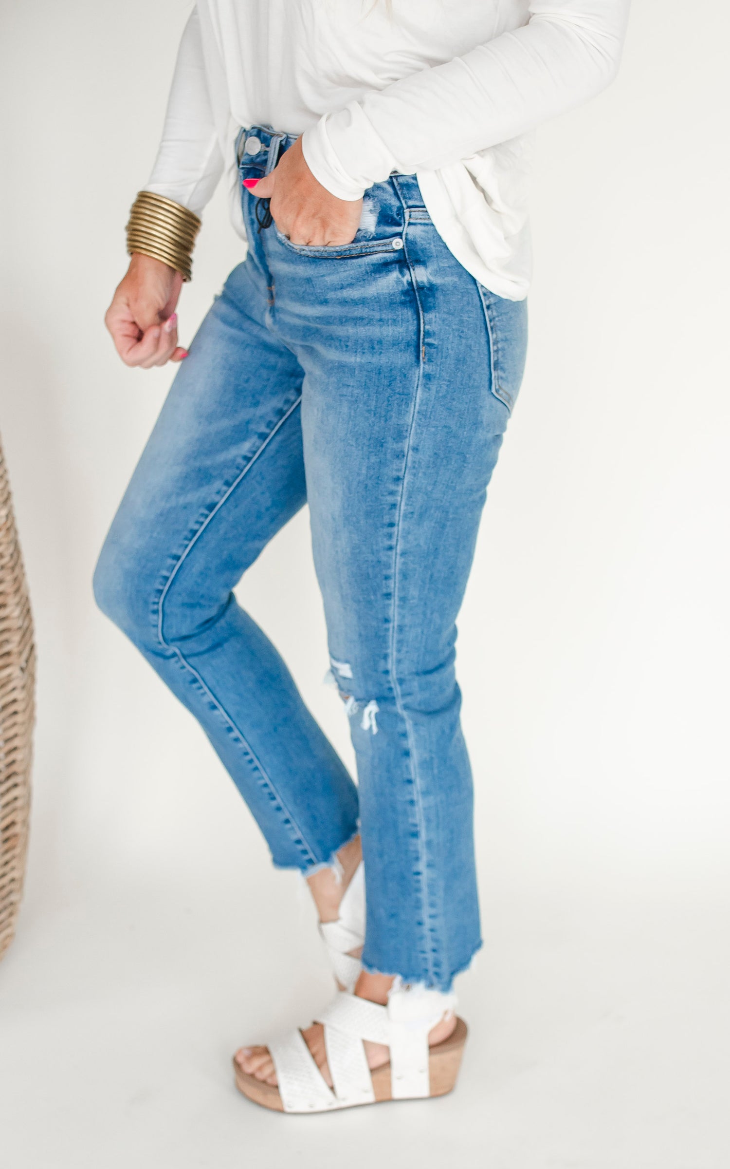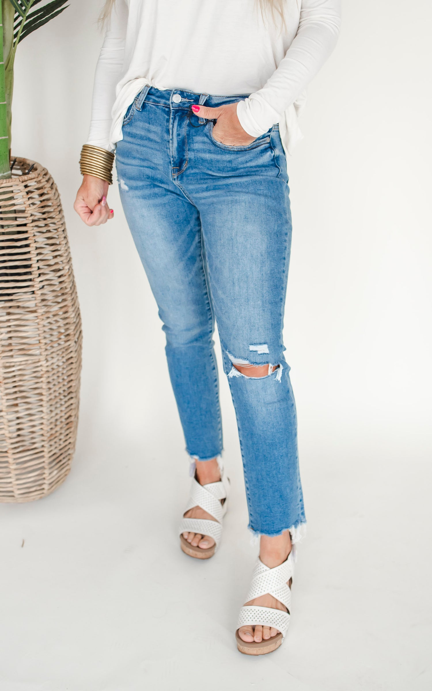 The Haven High Rise Slim Crop Denim Jean | Mica - Final Sale