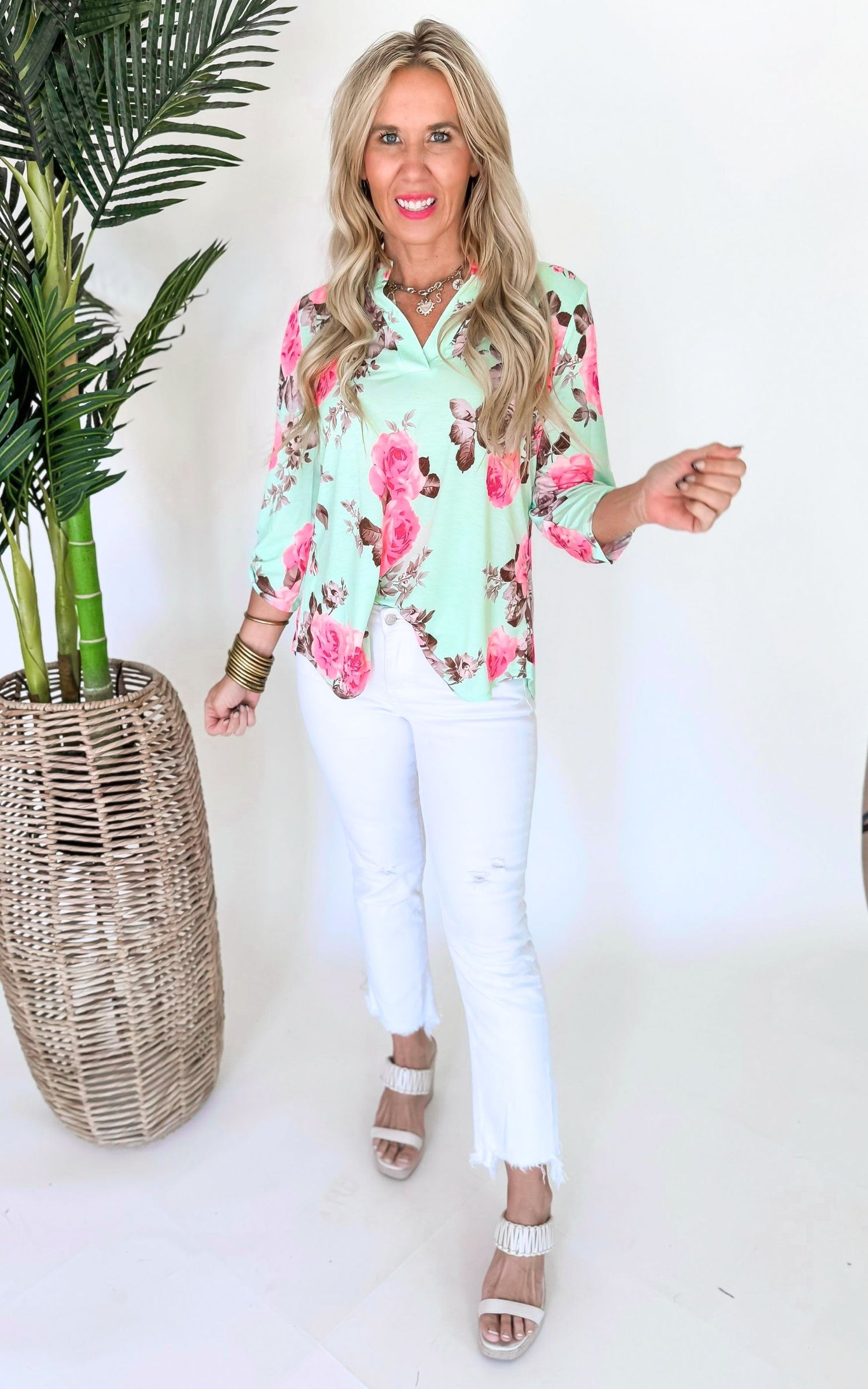 The Lizzy Charming Roses Floral Blouse Top - Final Sale