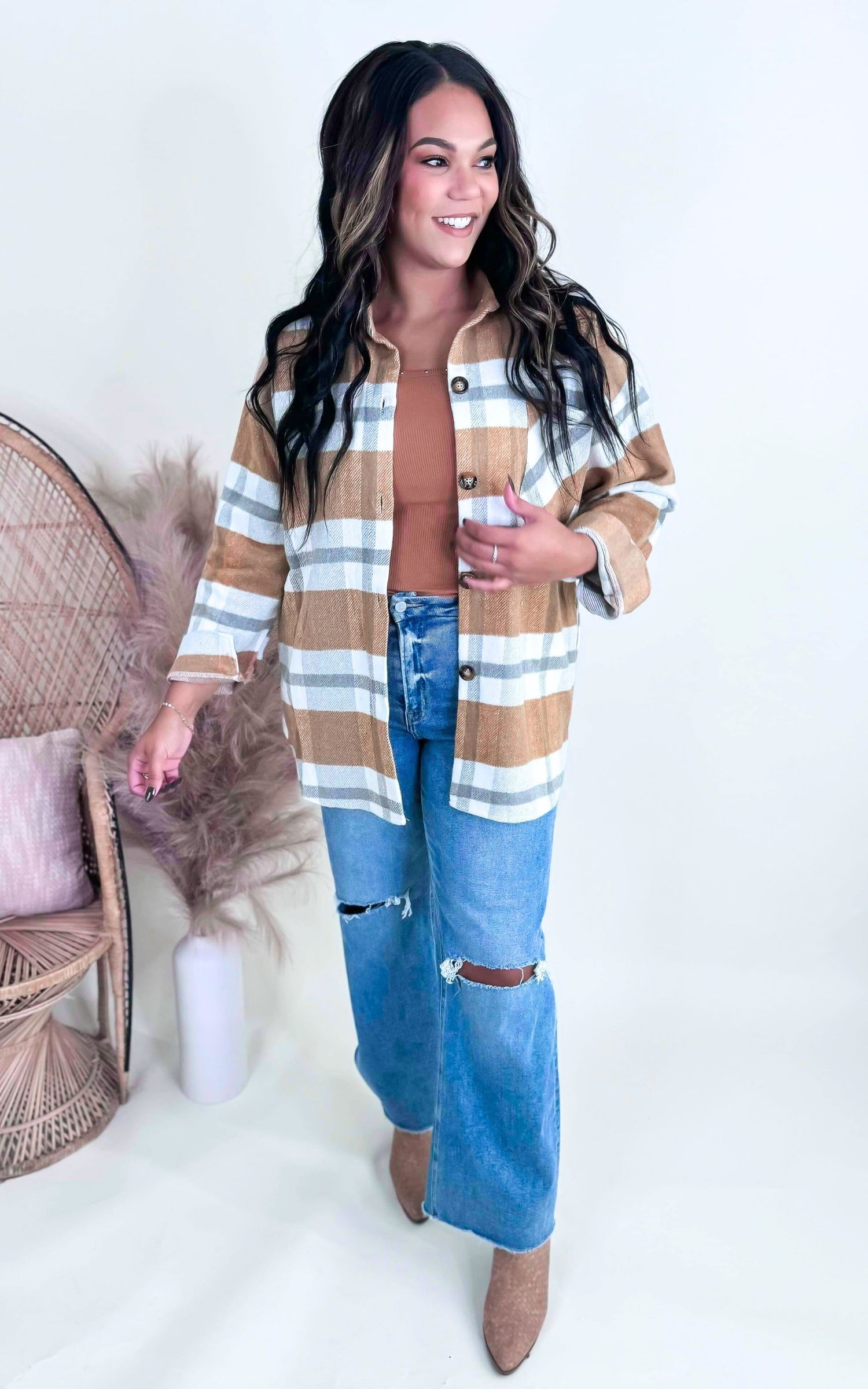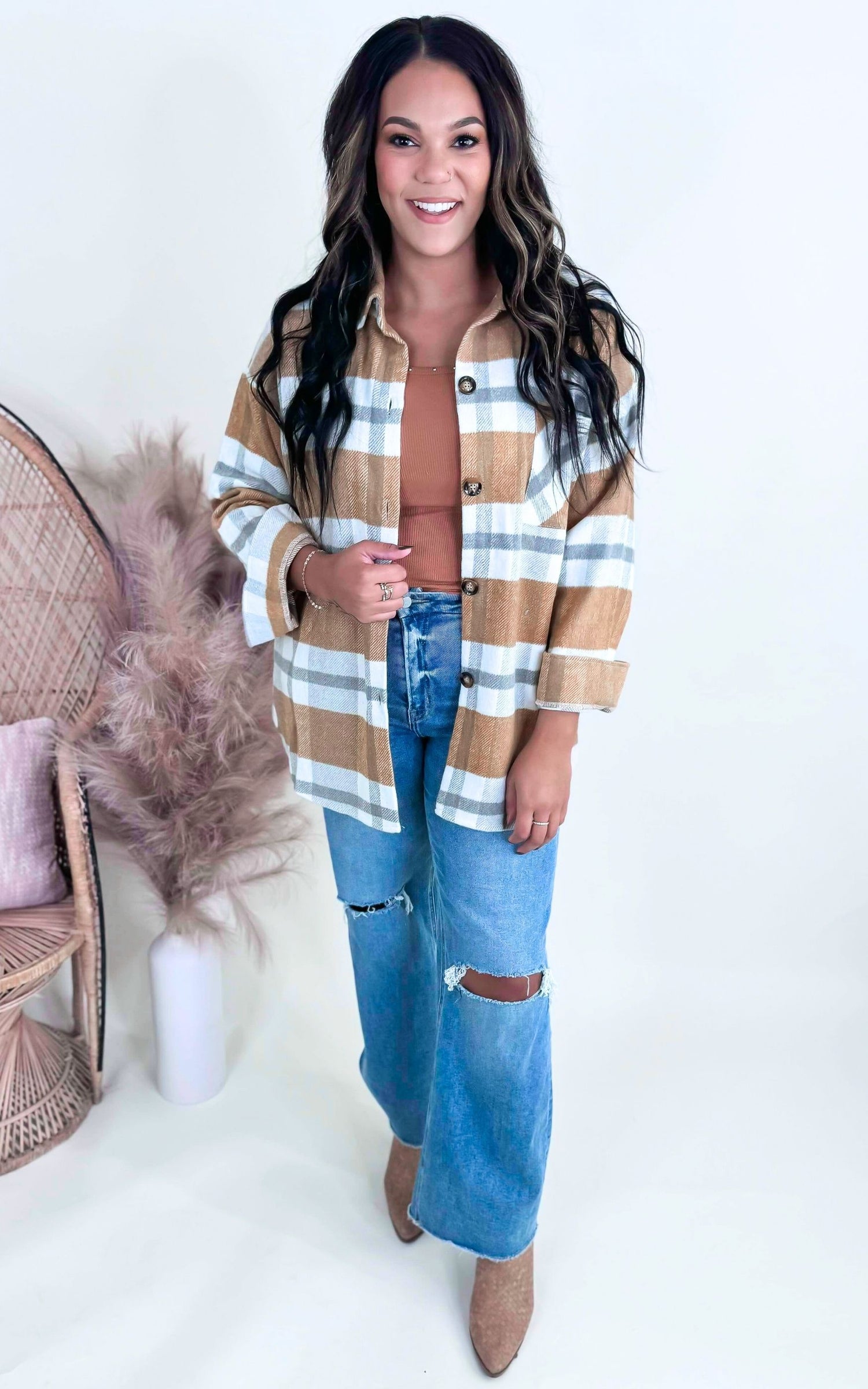 Introducing The Maple Grove Mustard Plaid Flannel Shacket - the perfect combination of style and comfort! Made from high-quality materials, this shacket features a trendy plaid pattern and a warm, cozy design. Whether you're running errands or heading out for a night on the town, this shacket will keep you looking and feeling great.
