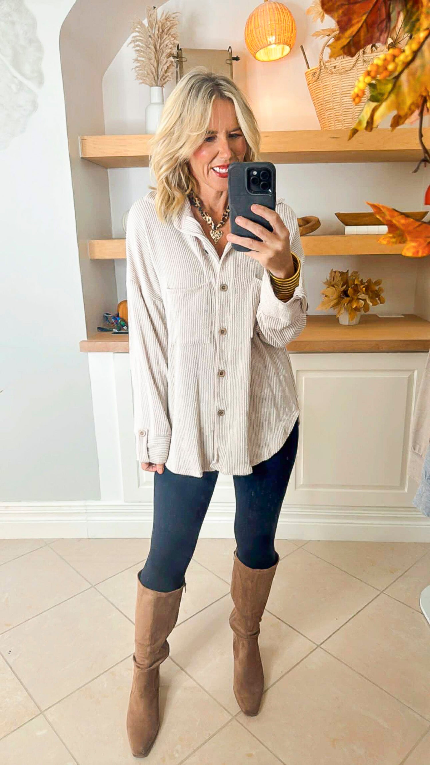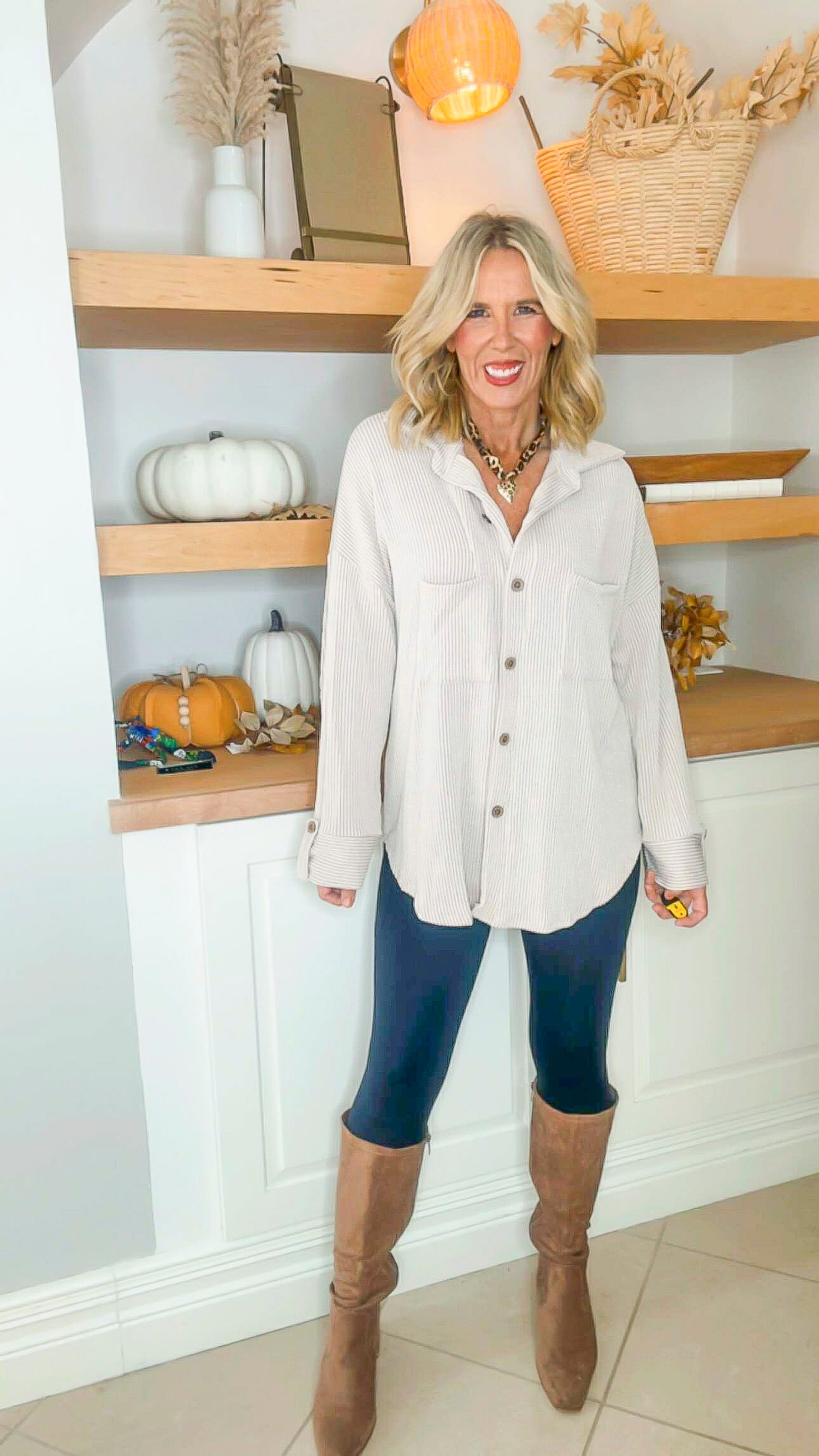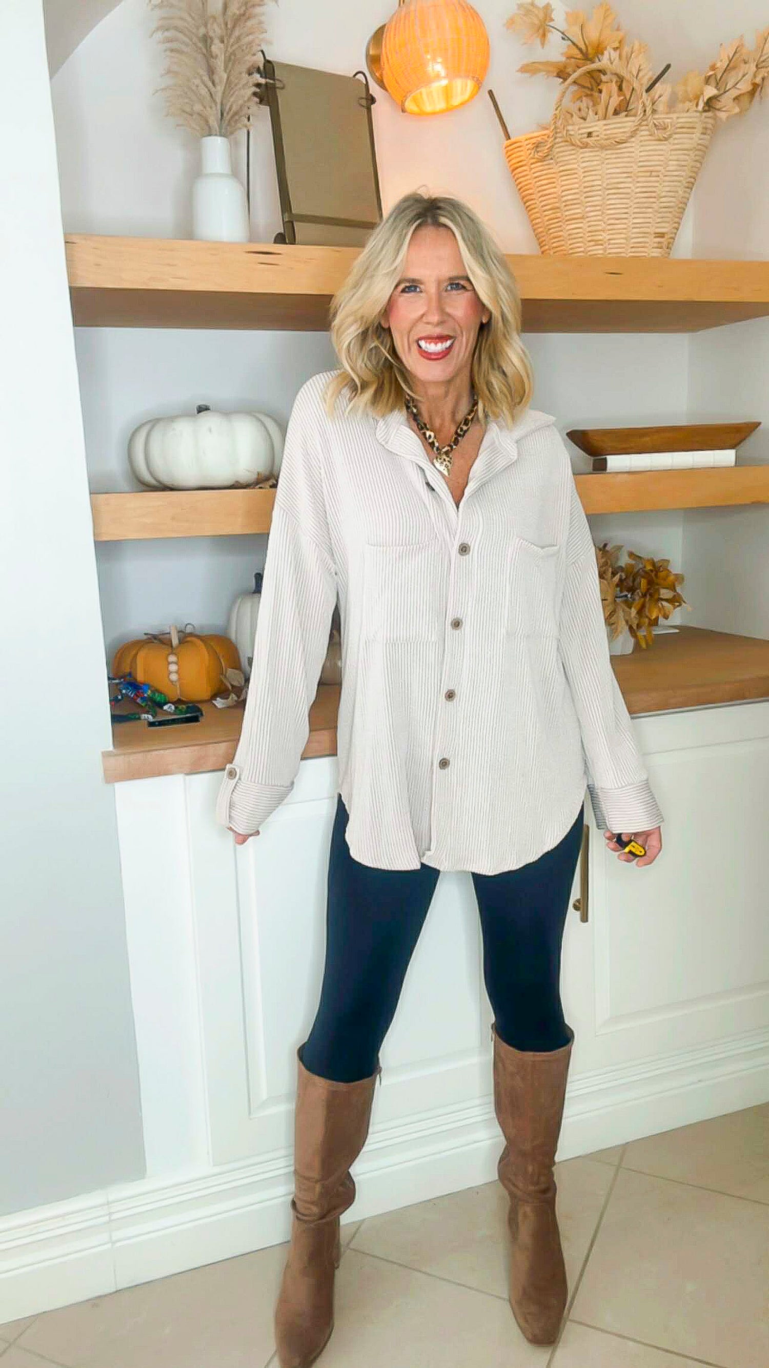 The Minas Blush Nude Ribbed Shacket is a perfect blend of a shirt and a jacket, designed for a comfortable and stylish layered look. Made from a soft, textured ribbed fabric, this piece features an oversized fit, classic collar, and button-front closure. It's a versatile and cozy addition to your wardrobe, complete with two front pockets for a functional and fashionable touch.
