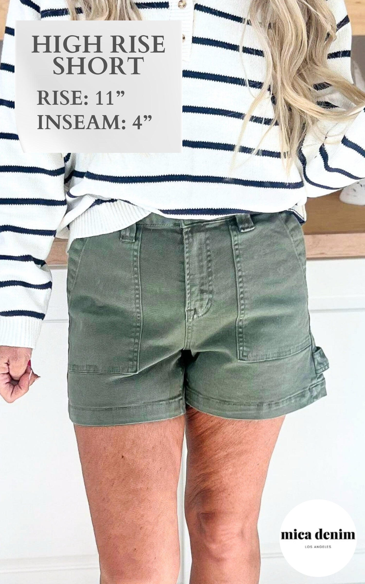 These Olive Super High Carpenter Shorts will help you nail any summer outfit! The high waist gives you a flattering silhouette, while the carpenter style adds a touch of edginess. Plus, the olive color is perfect for a day out or a night on the town. Get ready to slay!
