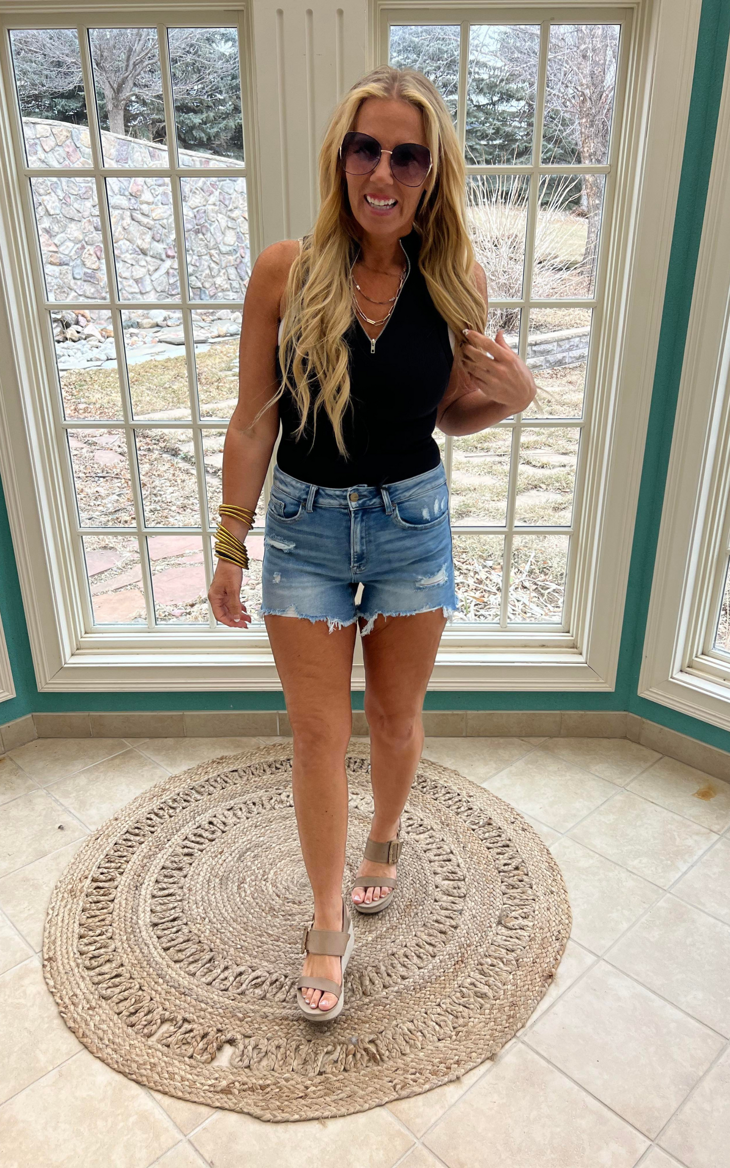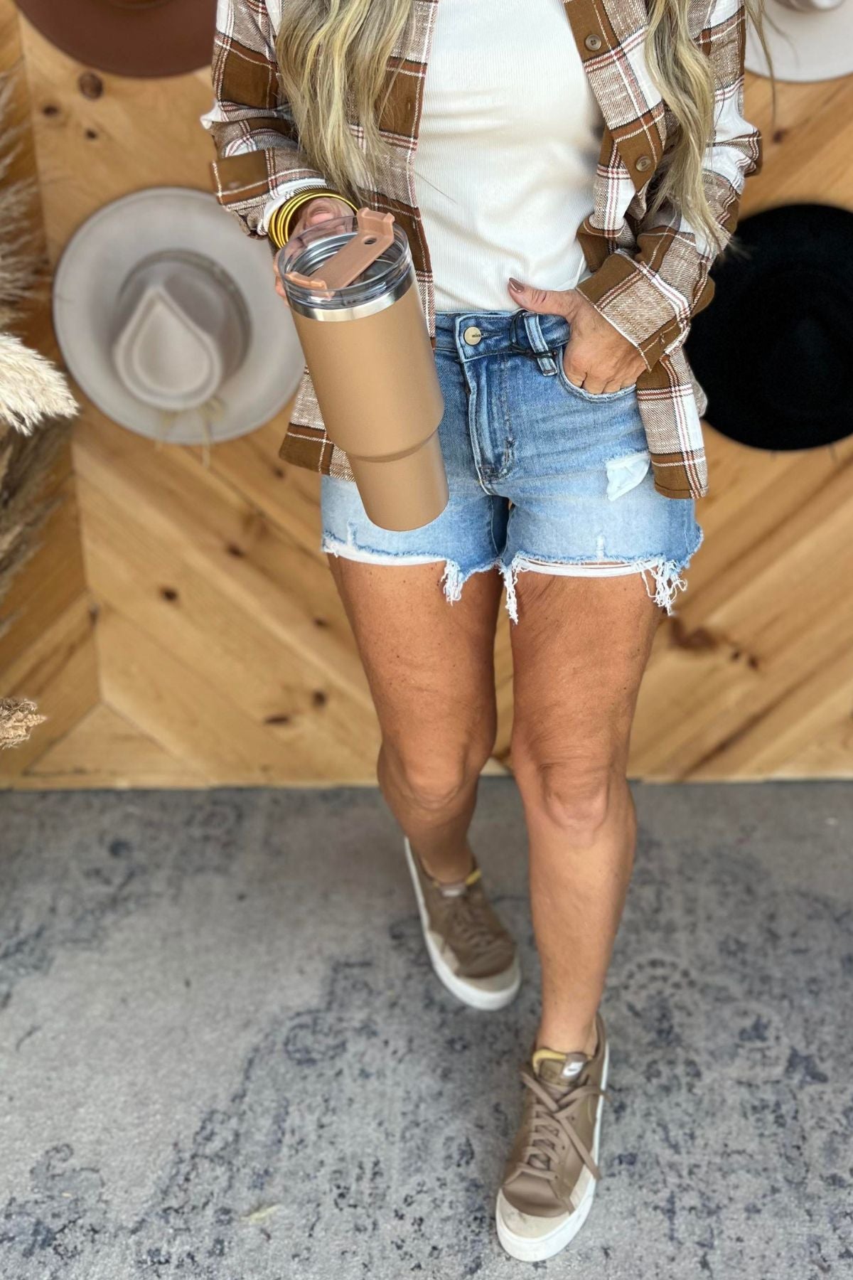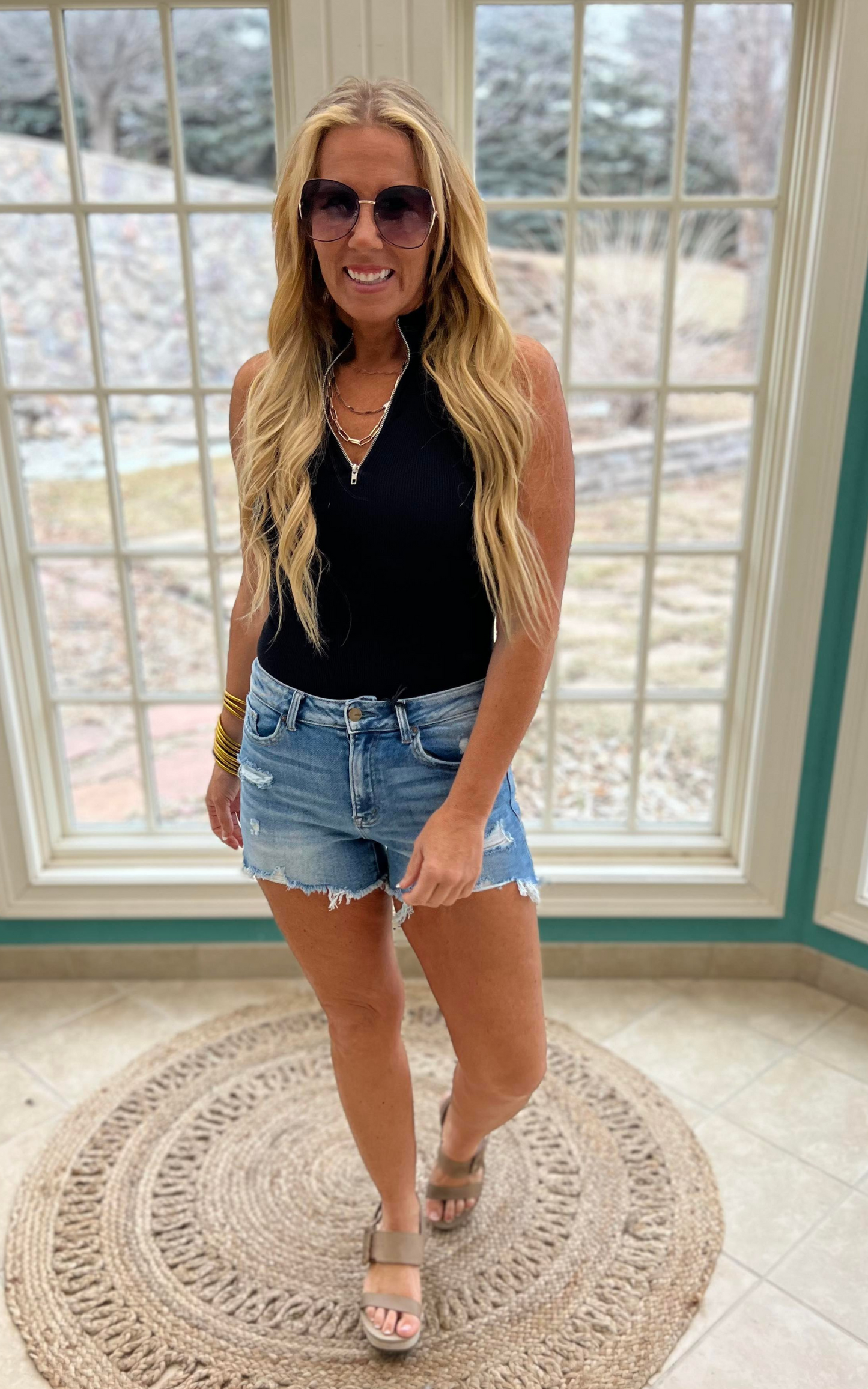 The Whitney Vintage High Rise Distressed Denim Shorts - Mica - Final Sale