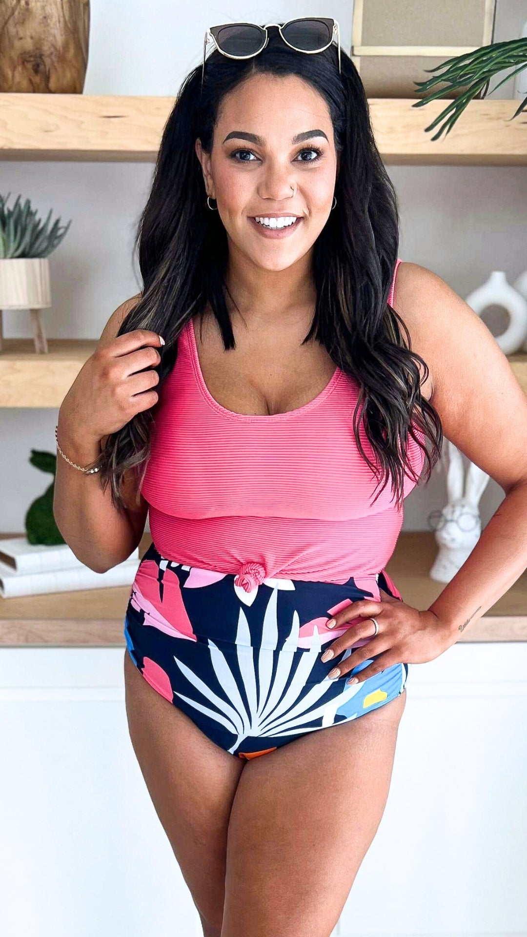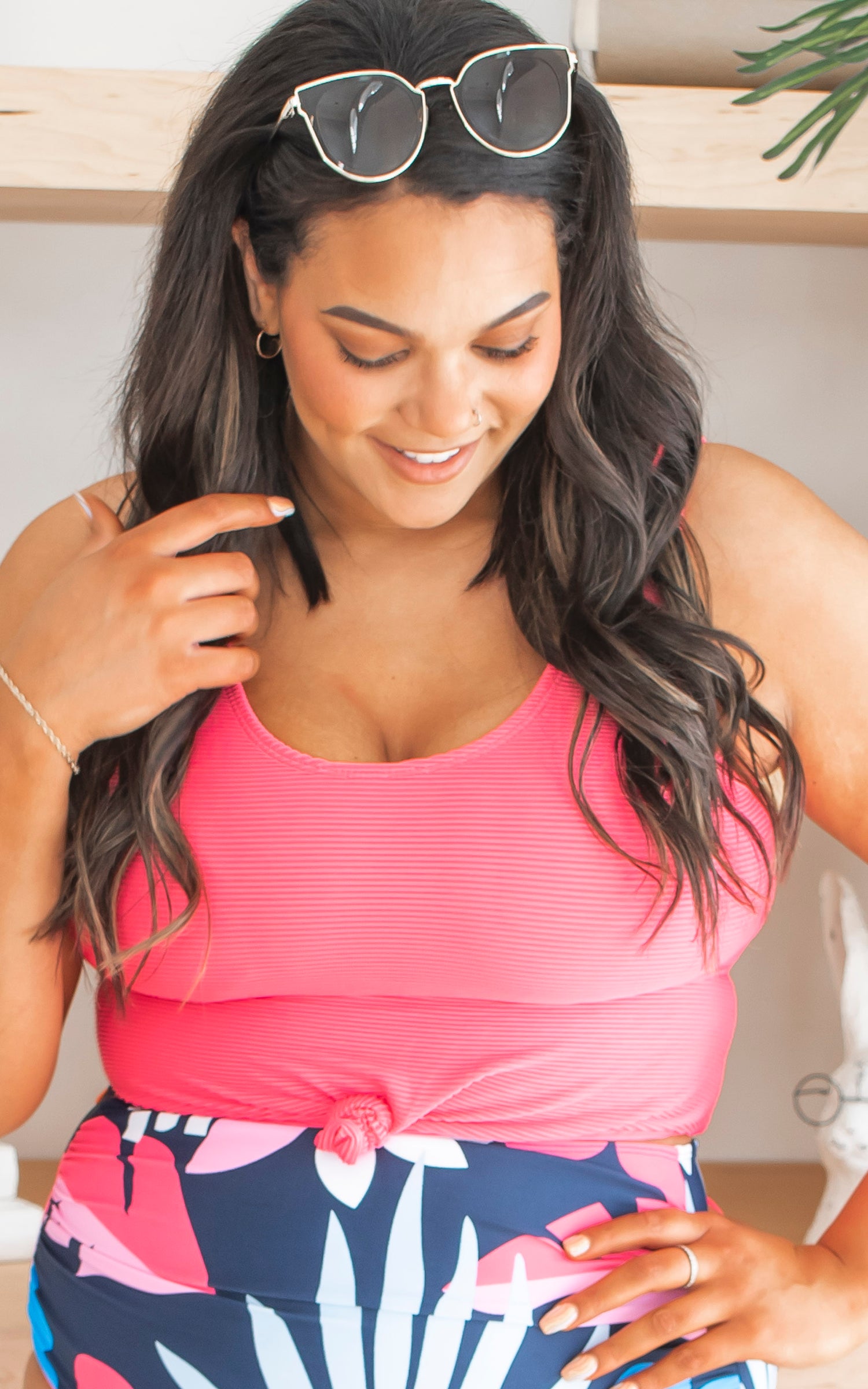 Traveler Check Knotted Front Swim Top | Dark Pink (TOP ONLY)