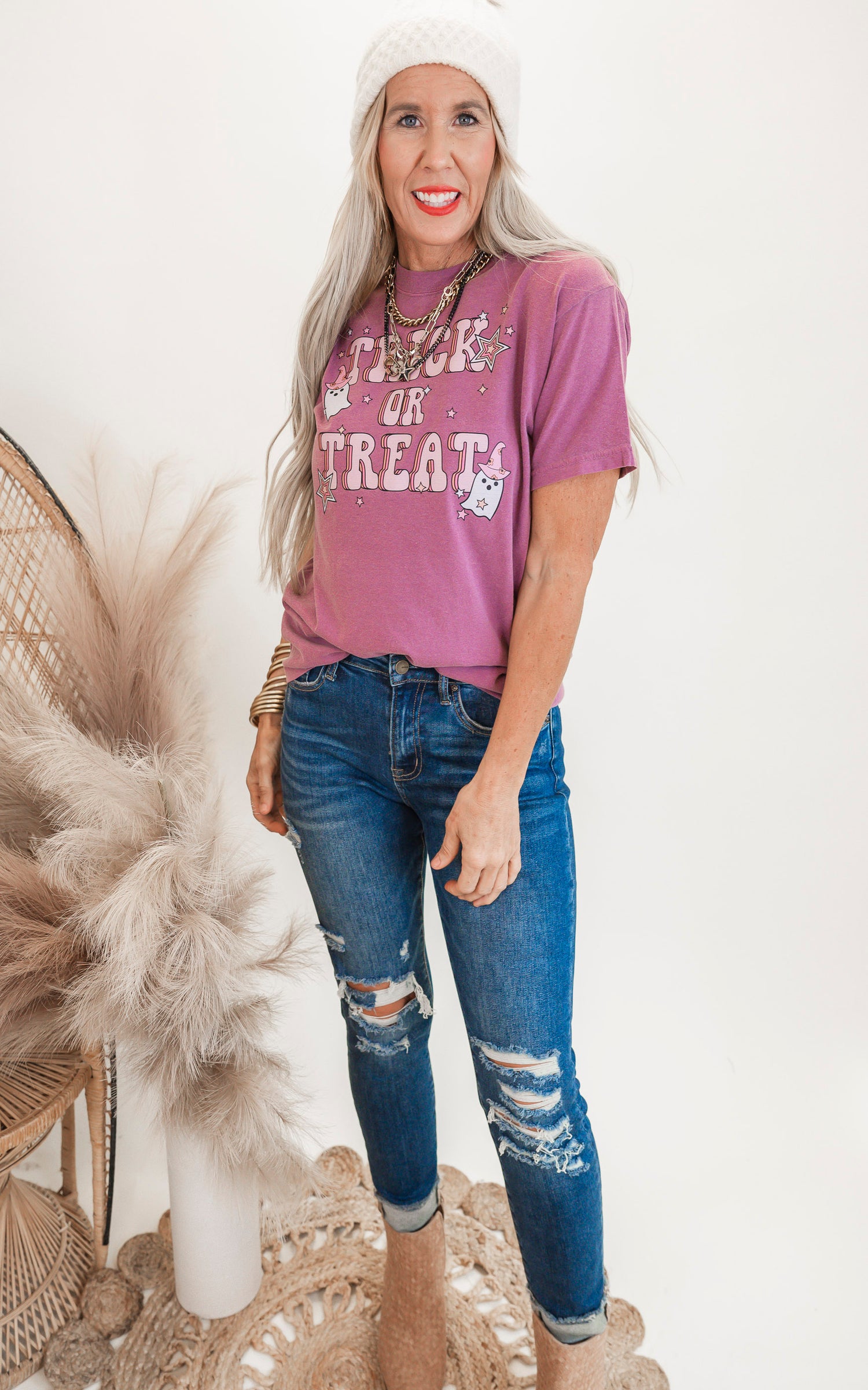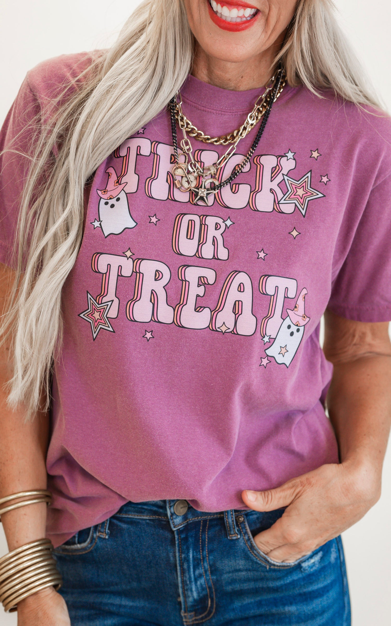 Get ready for spooky Halloween fun with our Trick or Treat Garment Dyed Graphic T-shirt! Made from high-quality fabric, this shirt features a unique dyed graphic that adds a touch of cool to your costume. Perfect for trick or treating or any festive occasion, this shirt is a must-have for any Halloween lover. Order now and get in the spirit of the season!