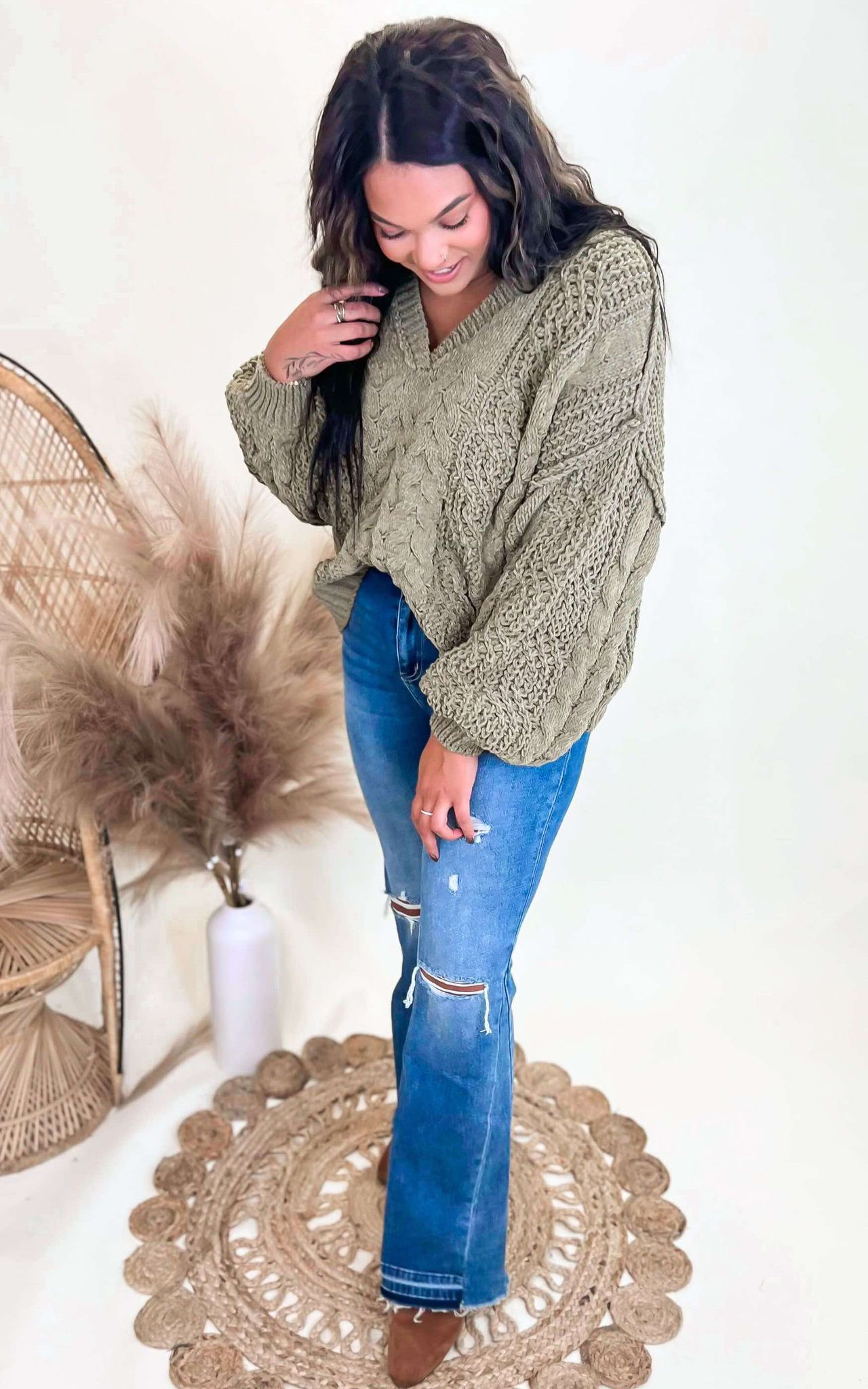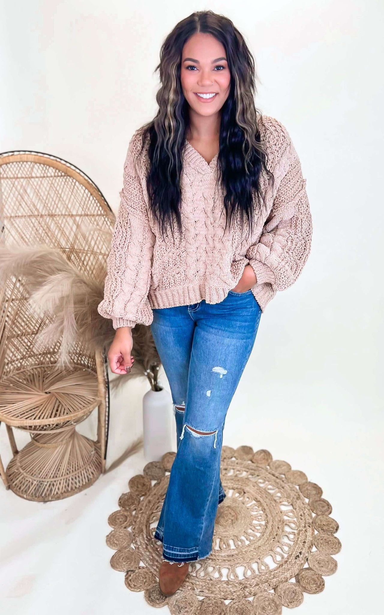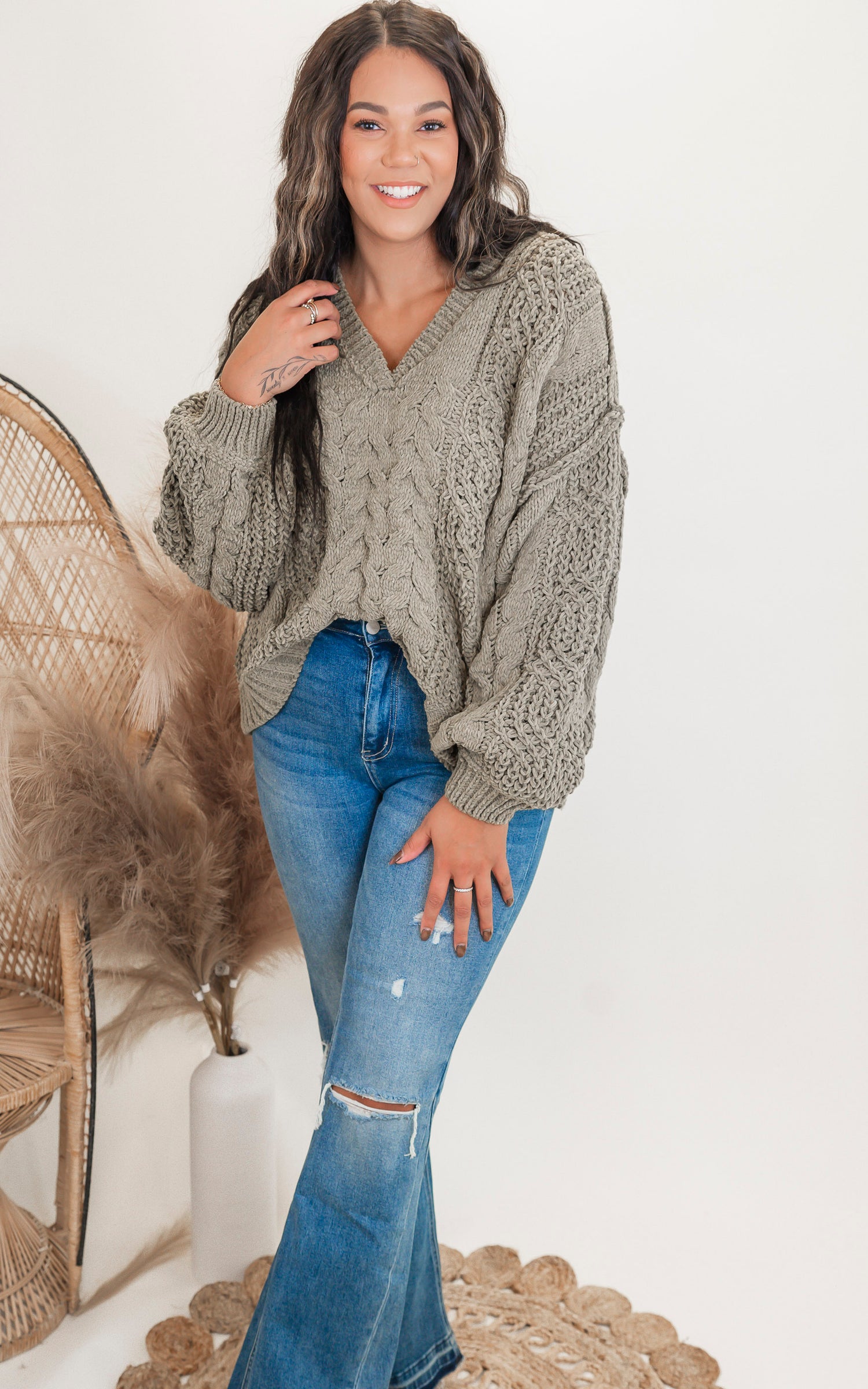 Feel cozy and chic in our V-Neck Cropped Chanille Sweater from POL! This sweater features a flattering V-neckline and a cropped fit, perfect for pairing with high-waisted bottoms. The luxurious chanille material adds a touch of elegance and warmth. Elevate your winter wardrobe with this must-have piece.
