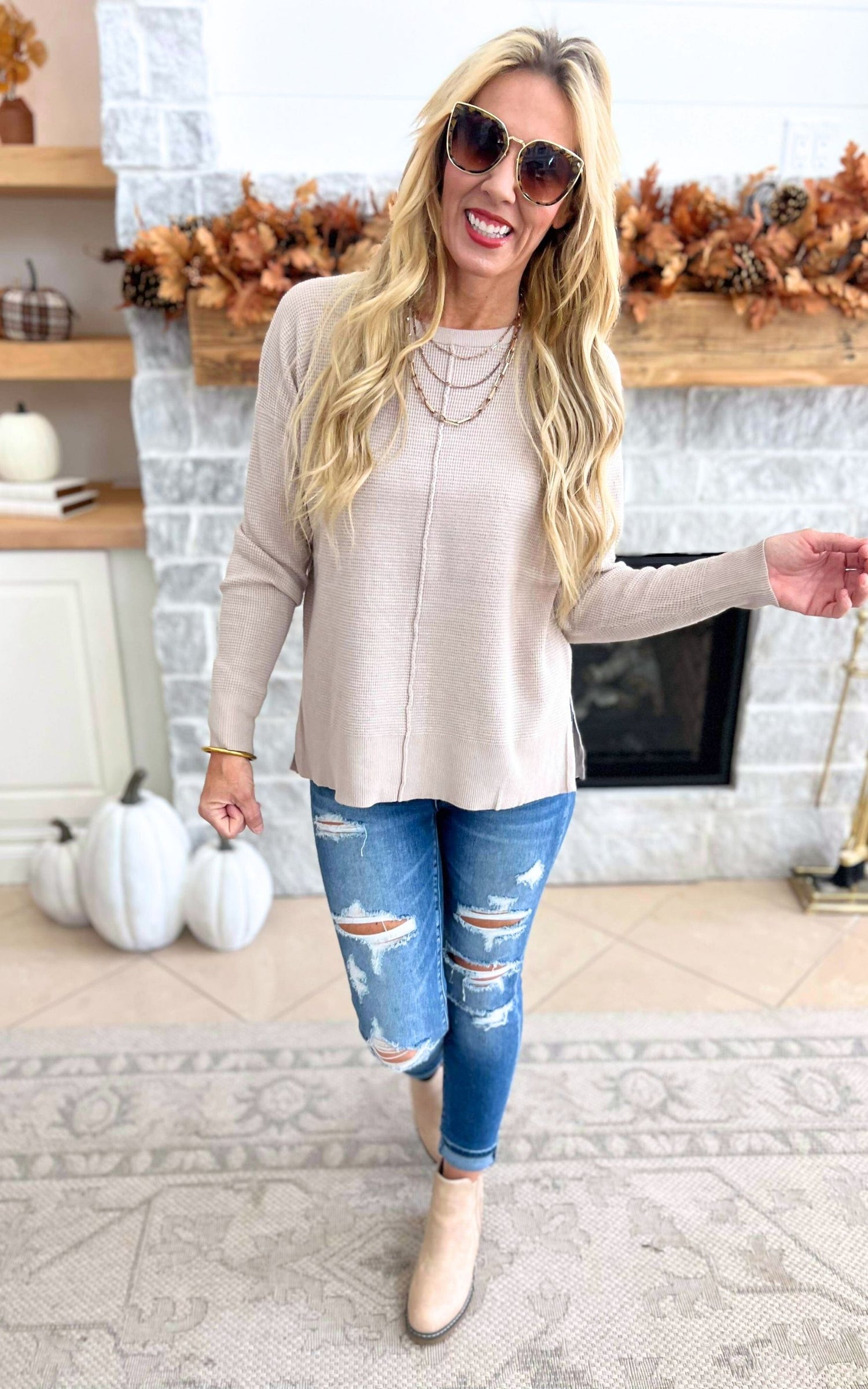 FIT DESCRIPTION: Sara is 5’7” and a size 5 in denim. She has a 36D bust. She is wearing a size Small. Be sure to watch the full FIT VID in the App (SHOP BAD HABIT) to see how it fits and feels.