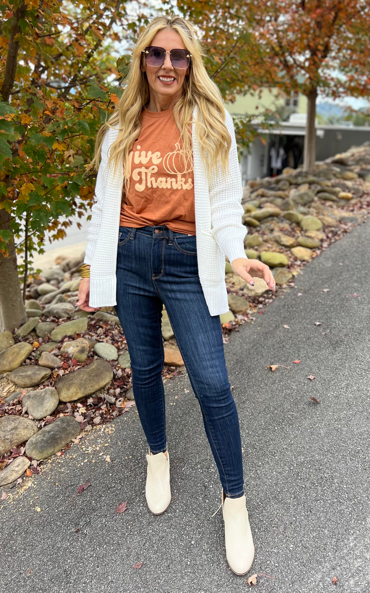 FIT DESCRIPTION: Sara is 5’7” and a size 5 in denim. She has a 36D bust. She is wearing a size Small. Be sure to watch the full FIT VID in the App (SHOP BAD HABIT) to see how it fits and feels.