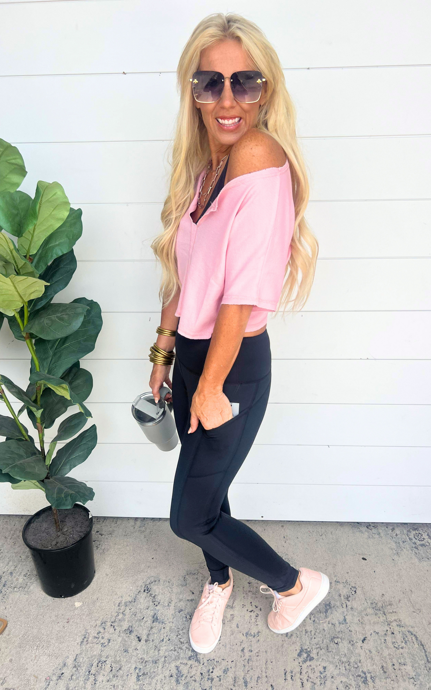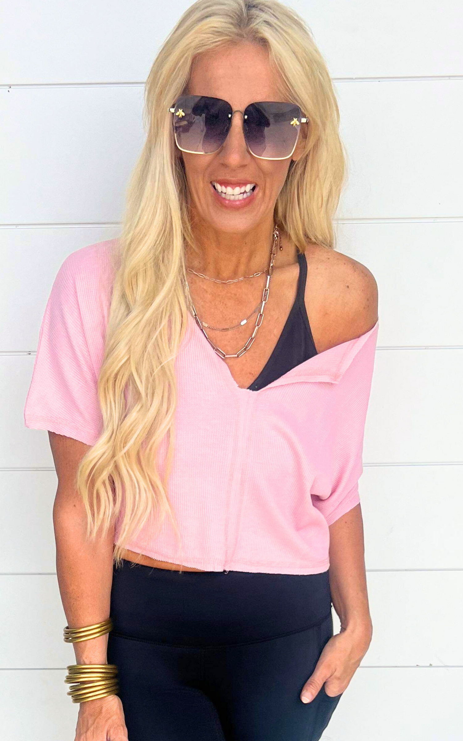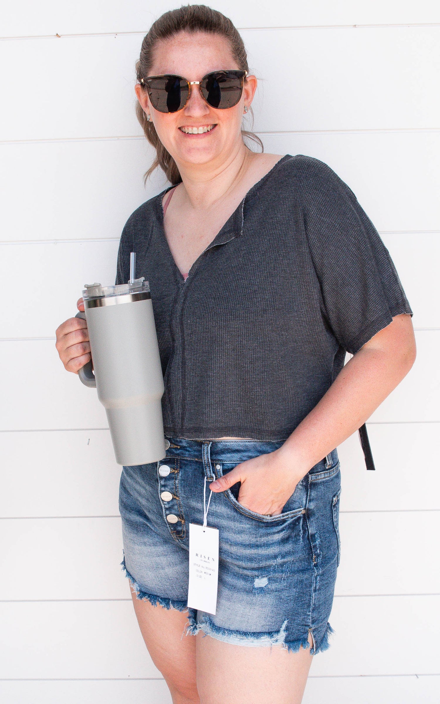 FIT DESCRIPTION: Sara is 5’7” and a size 5 in denim. She has a 36D bust. She is wearing a size Small. Be sure to watch the full FIT VID in the App (SHOP BAD HABIT) to see how it fits and feels.