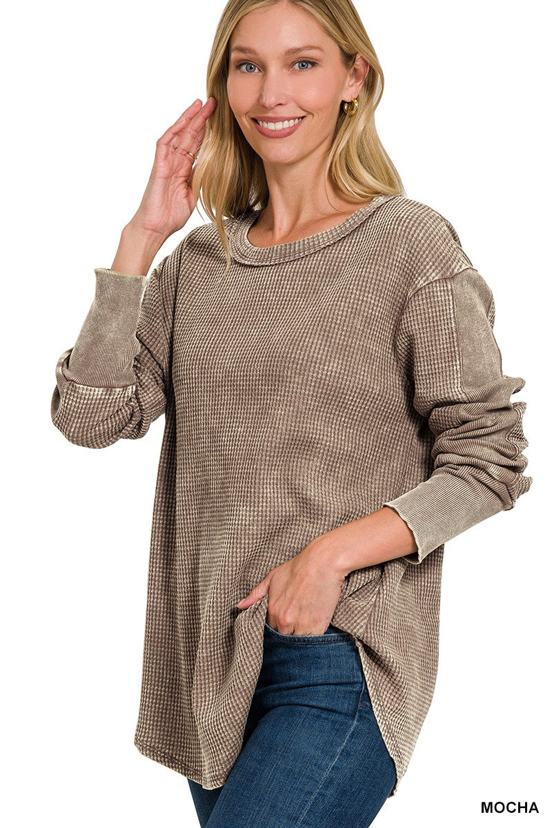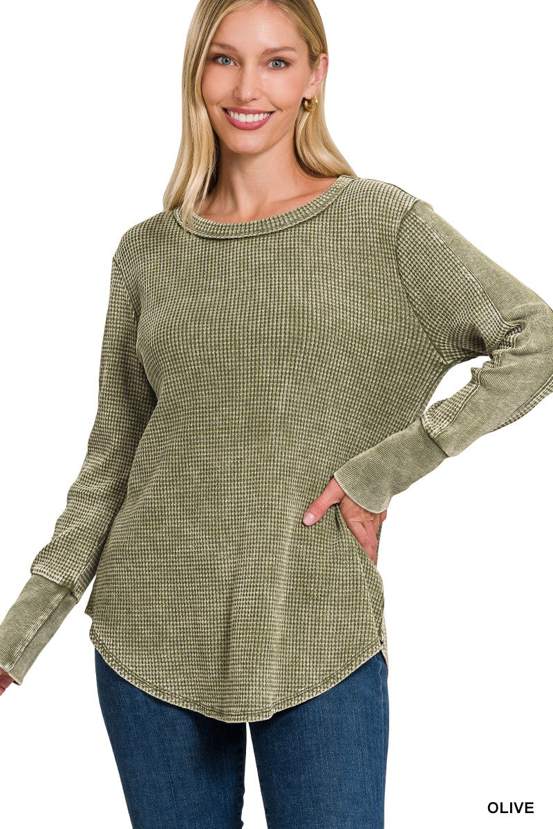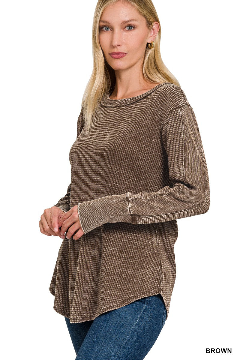 Washed Baby Waffle Long Sleeve Top - Part 4 - Final Sale