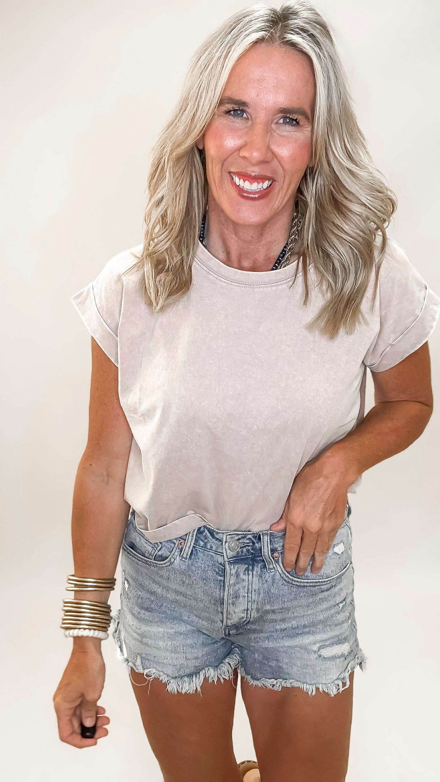 The Lakin Washed Cotton Cuffed Short Sleeve Top | ZENANA DEAL