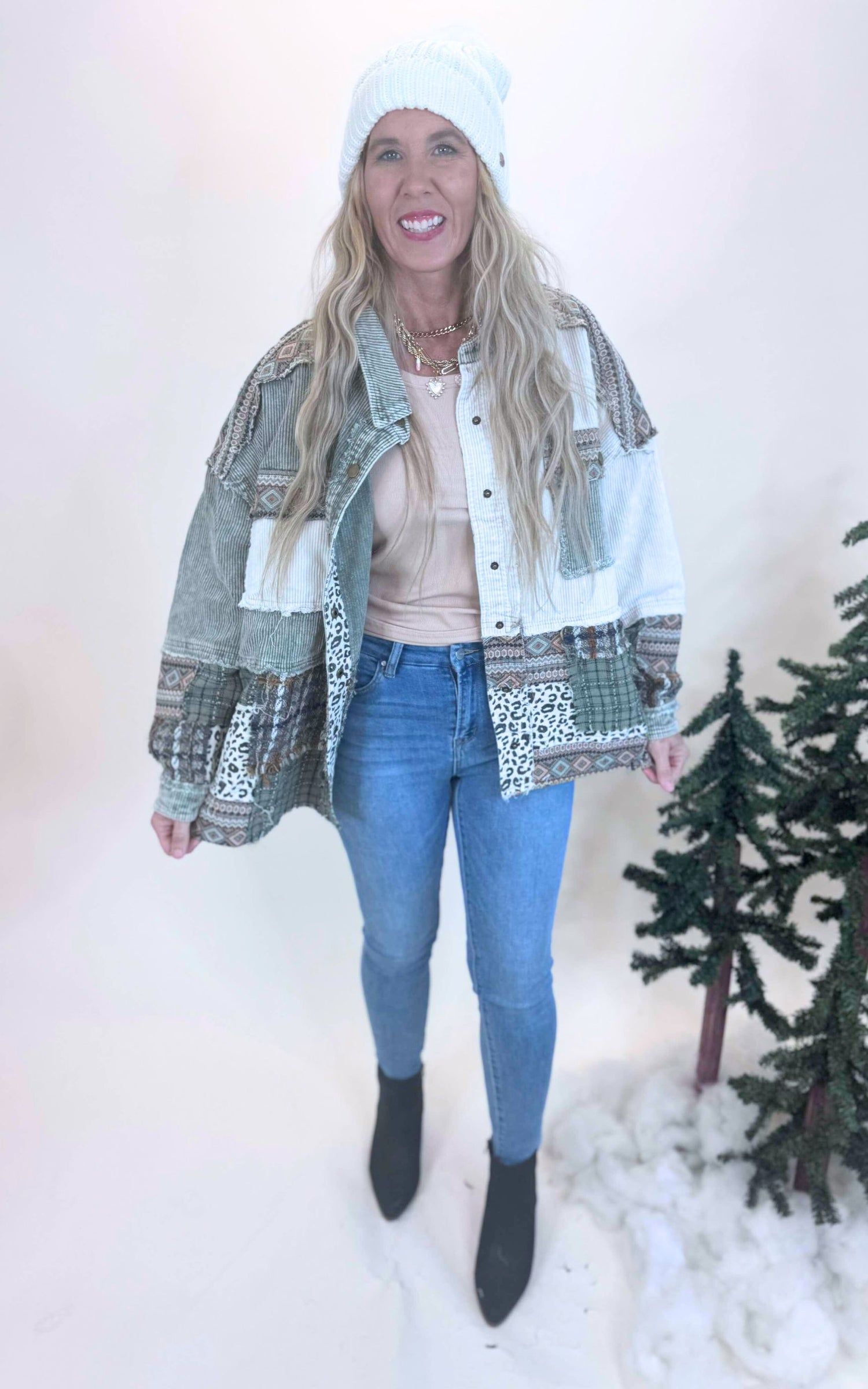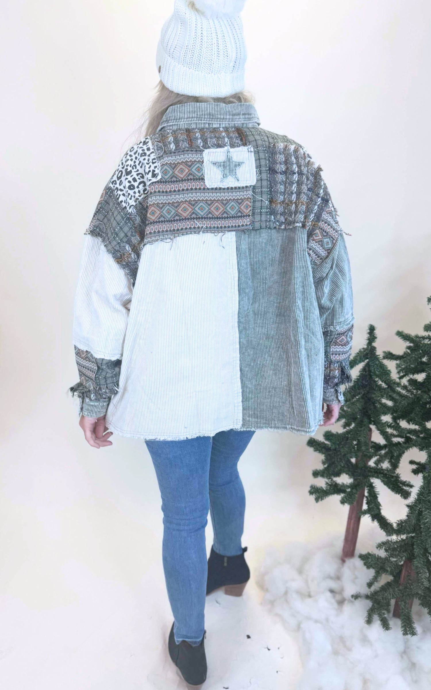 Introducing our Washed Fabric Blocked Jacket Shacket, the perfect combination of style and comfort. Made with washed fabric for a soft touch and blocked panels for a unique look. Stay warm and on trend with this must-have addition to your wardrobe.
