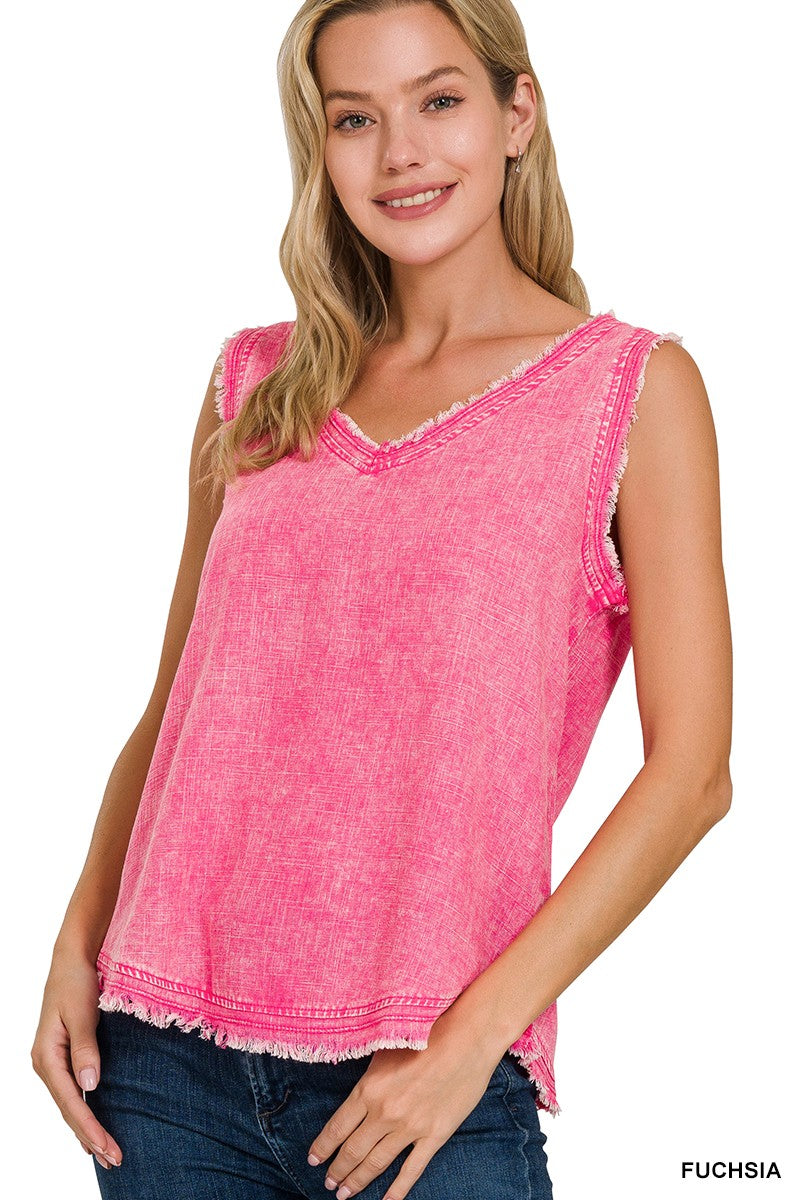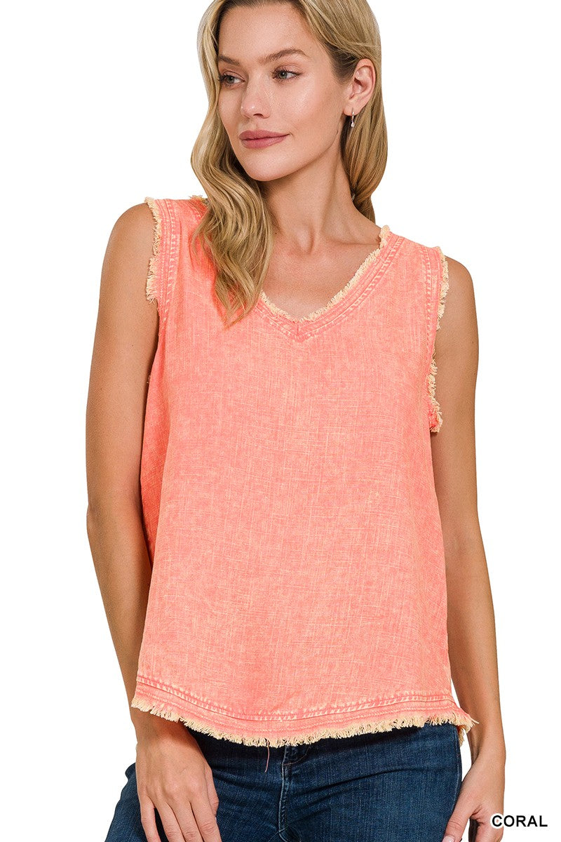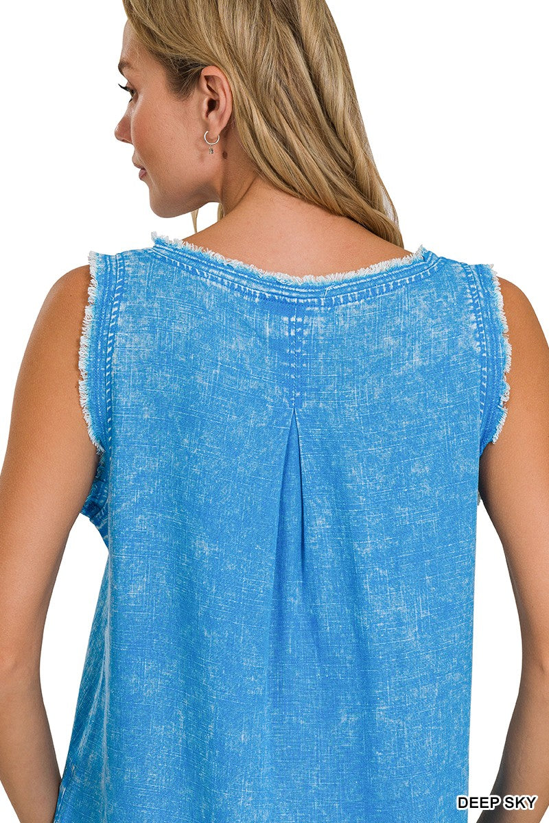 Washed Linen Frayed Edge Sleeveless Top - Final Sale