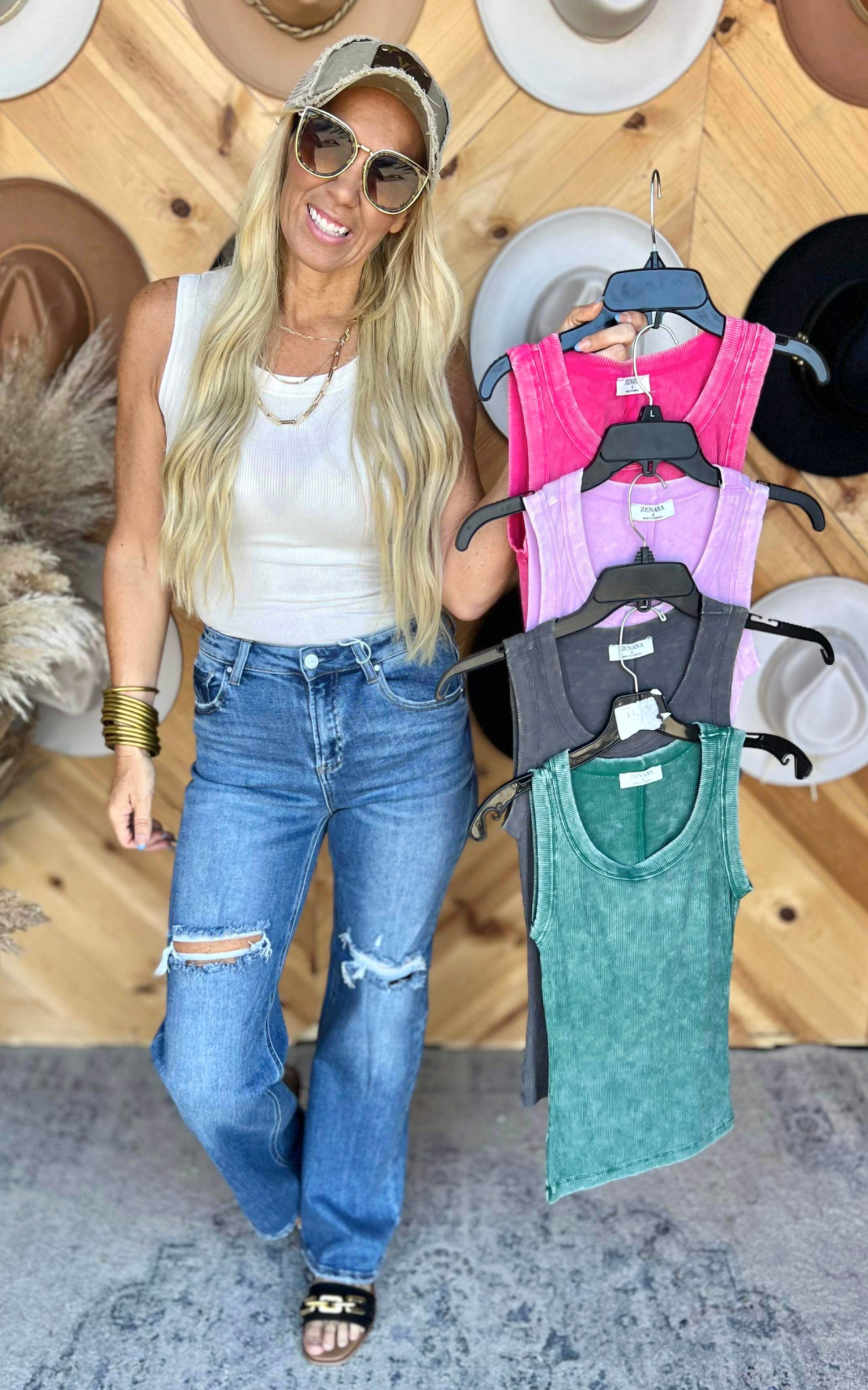 Washed Ribbed Scoop Neck Tank Top - Final Sale