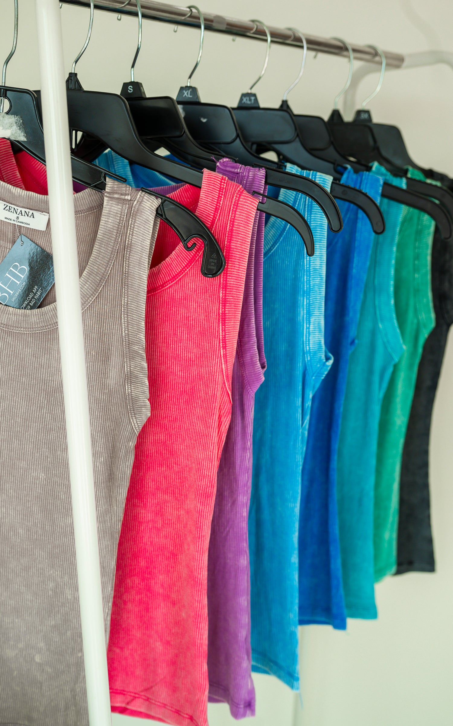 Washed Ribbed Scoop Neck Tank Top * - Final Sale