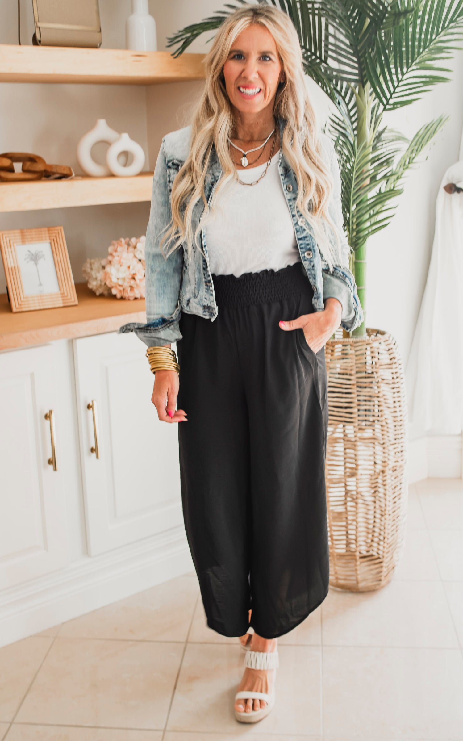 Be the ruler of the casual-verse in our Weekend Chic Casual Wide Leg Pants! Flow freely and stay comfy with a smocked waistline and pockets for all your stuff. Perfect for a chill Saturday, these pants are the key to cool, effortless style!